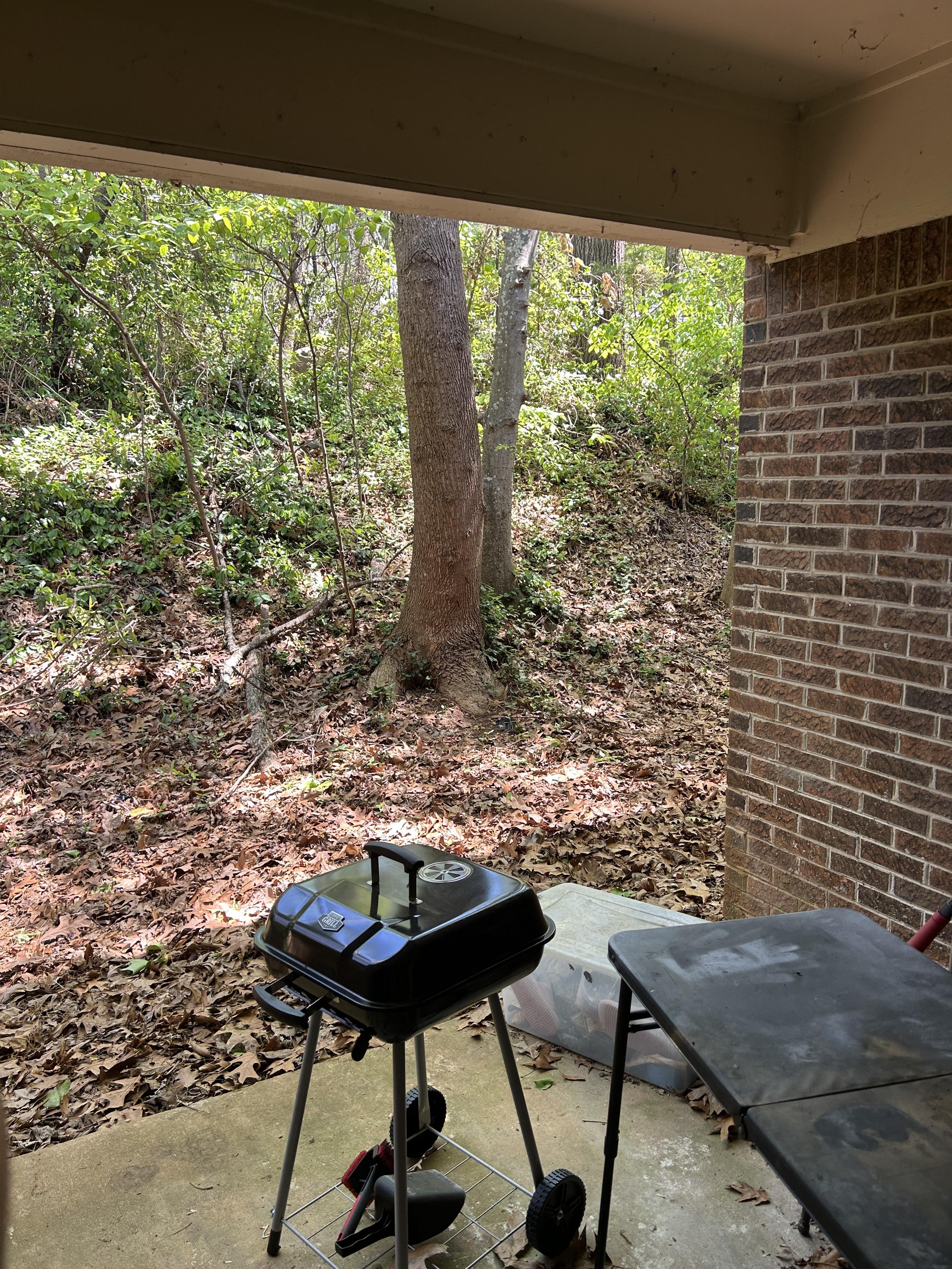 Yeah, rake those leave away in case shit goes south, you can pull the grill out from cover and hose it off or extinguisher