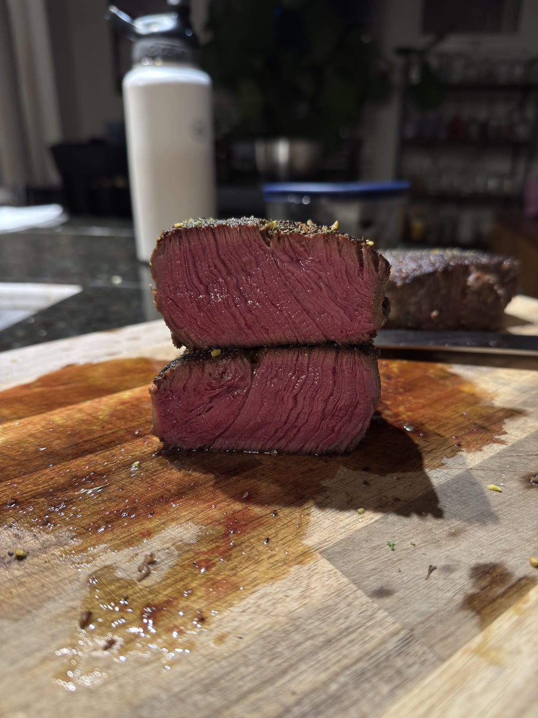 Eranaut 10 months ago Damn. How did you get such a dark crust but keep it so thin? Even when I reverse sear I still get a little bit of grey band