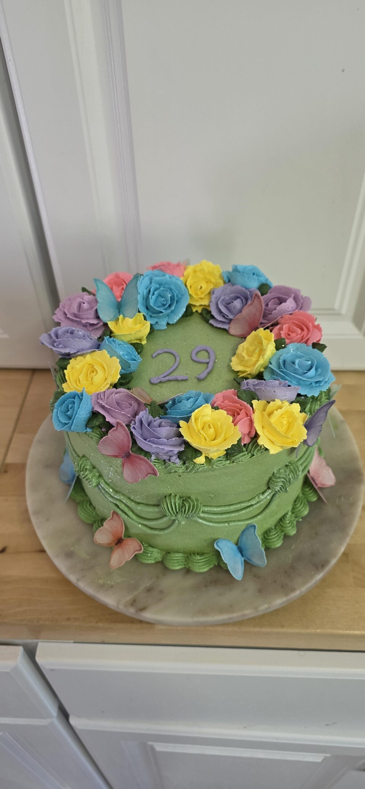 My drop lines need work, but this was my first try at them.by sugakookies00 2 Comments ijuswannabehappybro 12 months ago Prettyyyy!!! HBD Curious-Tart6854 12 months ago Beautiful cake!! Love the colors!! Happy birthday to you!!! 🎉🌺Write A CommentYou must be logged in to post a comment.
