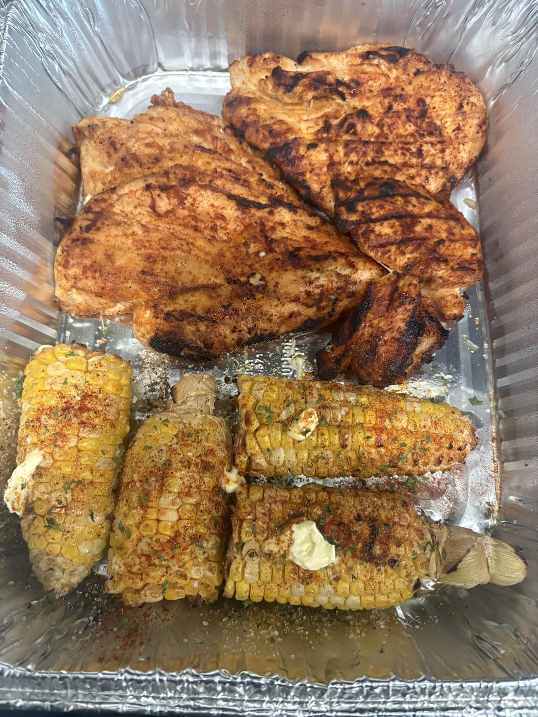 So I’m off every Sunday and usually every Monday. Sunday is a family day but Monday is all mine. I usually do the yard during the day, wash and gas the cars and grill for dinner. Tonight I decided on the holy trinity-steak chicken and shrimp with a side of grilled corn and air fryer French fries.
