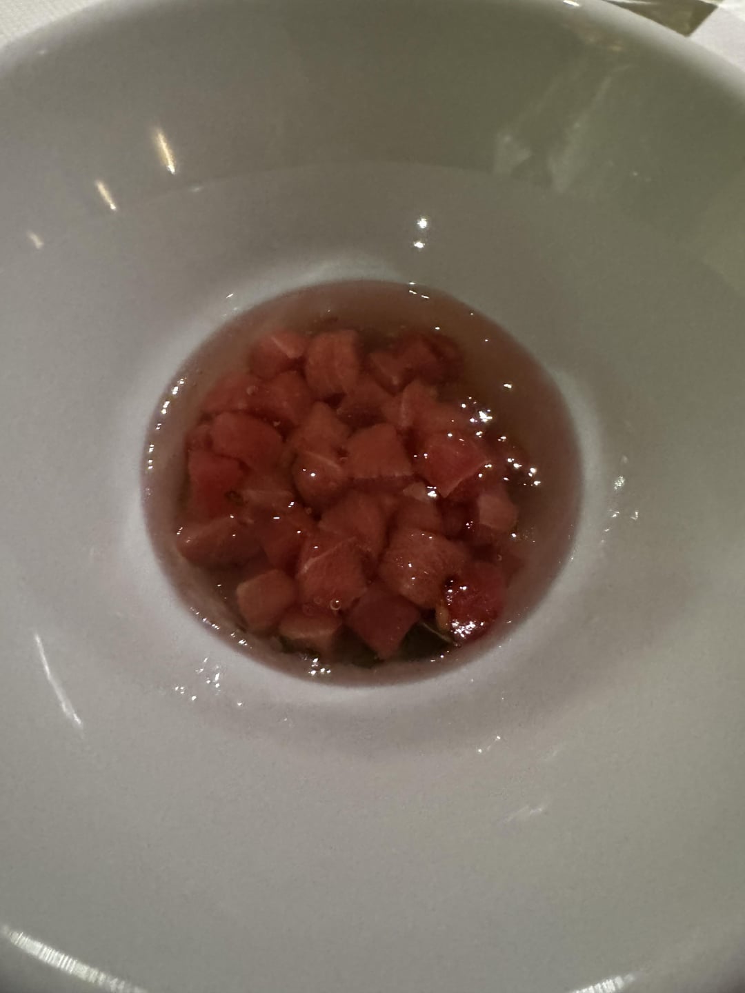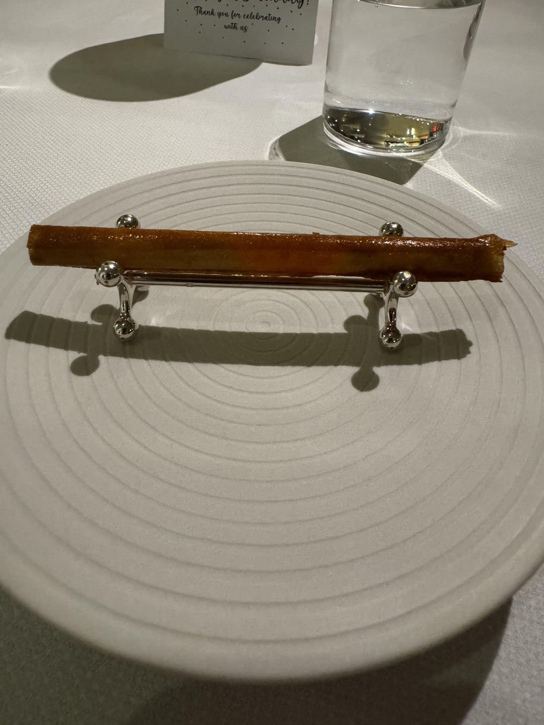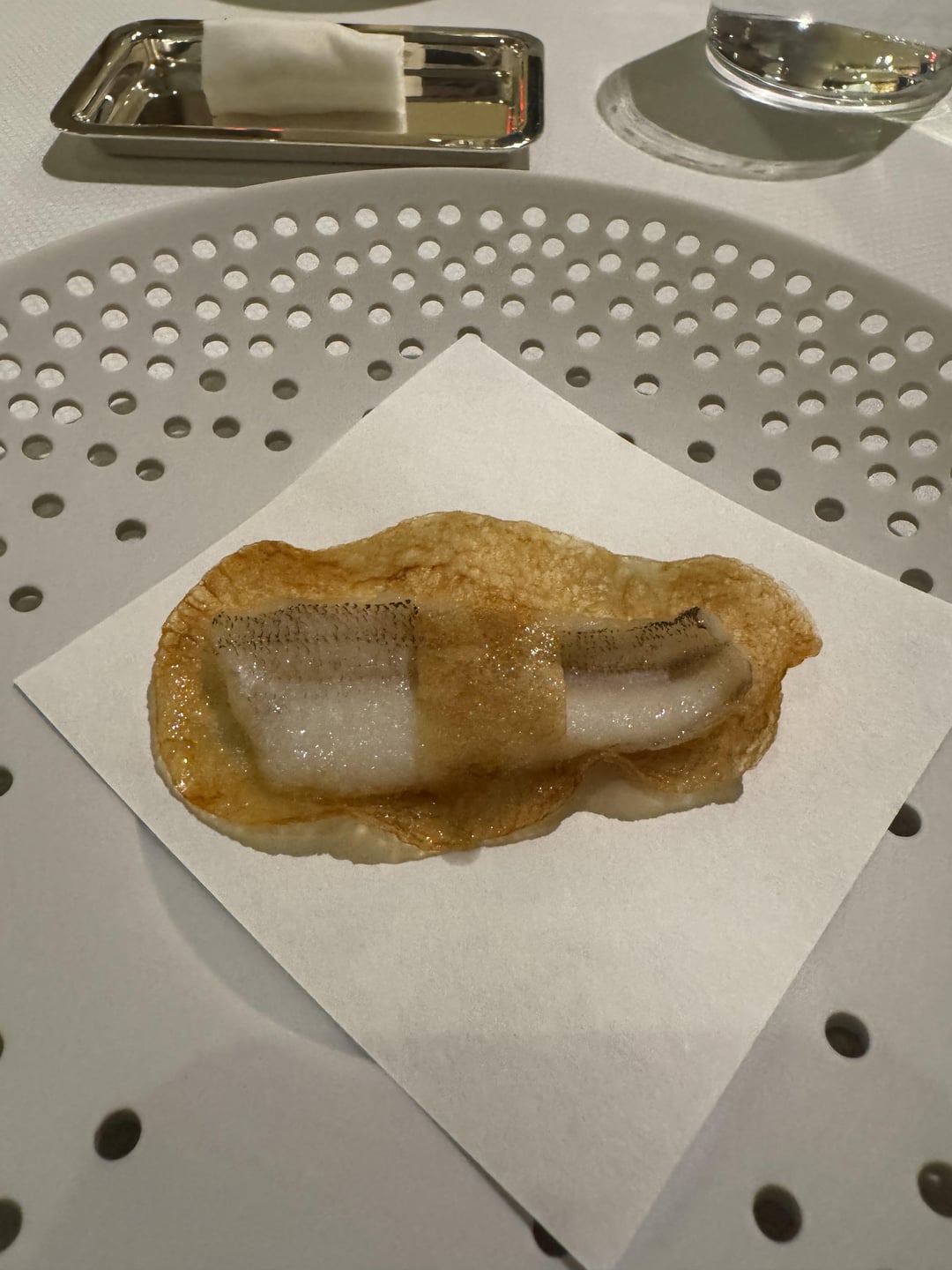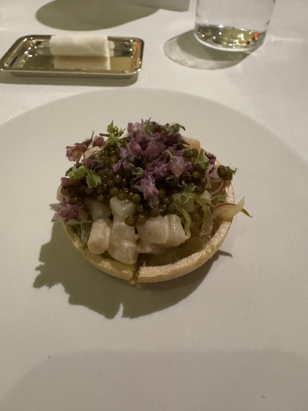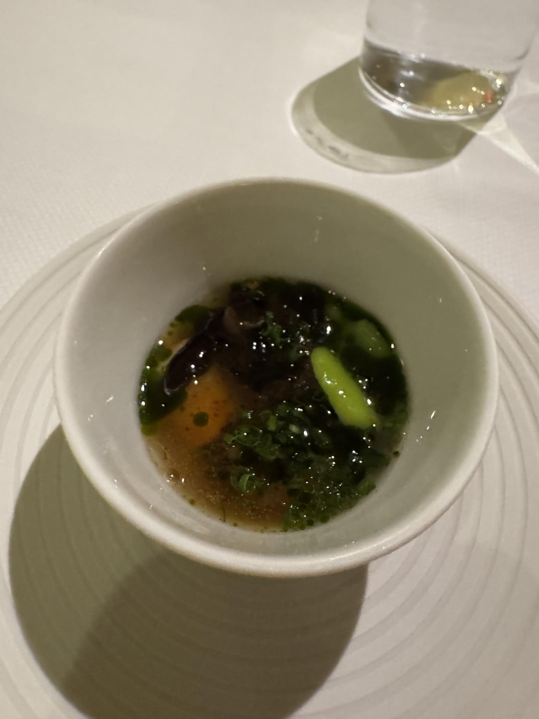 An outstanding meal overall. We are pescetarian so they replaced some things like wagyu with bluefin tuna and foie gras with ravioli. Easily the best Western seafood I’ve ever had, including Le Bernardin. However, I will say after enjoying the seafood we were very underwhelmed by the dessert, which was a matcha shaved ice soufflé with a tiny bit of ice cream under it. It was so light that it barely even registered and not the rich and satisfying dessert we were hoping we would get (it was my birthday too, and nothing extra for that, while Le Bernardin gave us a cupcake).
