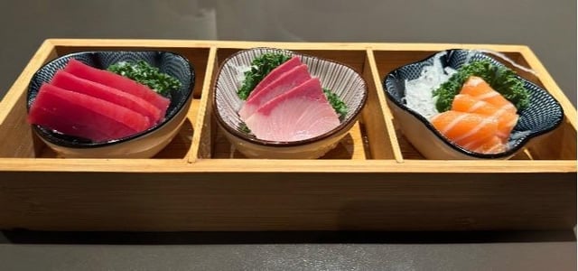 Tuna, Yellowtail & Salmon sashimiSeaweed salad, Salmon sashimi salad, Spicy Tuna & Mango salad & tucked in the back Cucumber salad. by MsMarji 2 Comments 2girls1eli 10 months ago Tfti globalgourmet 10 months ago First image looks very nice. But on the second, spicy tuna and mango? This sounds pretty weird to me.Write A CommentYou must be logged in to post a comment.
