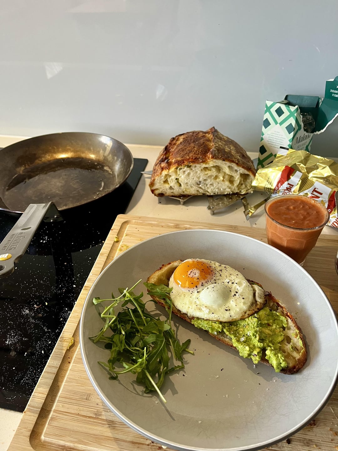 First time with inclusions – if you haven’t already done a cheddar and jalapeño sourdough, DO IT NOW! Had it with smashed avocado, fried egg, and gazpacho. Very happy with how it came out.