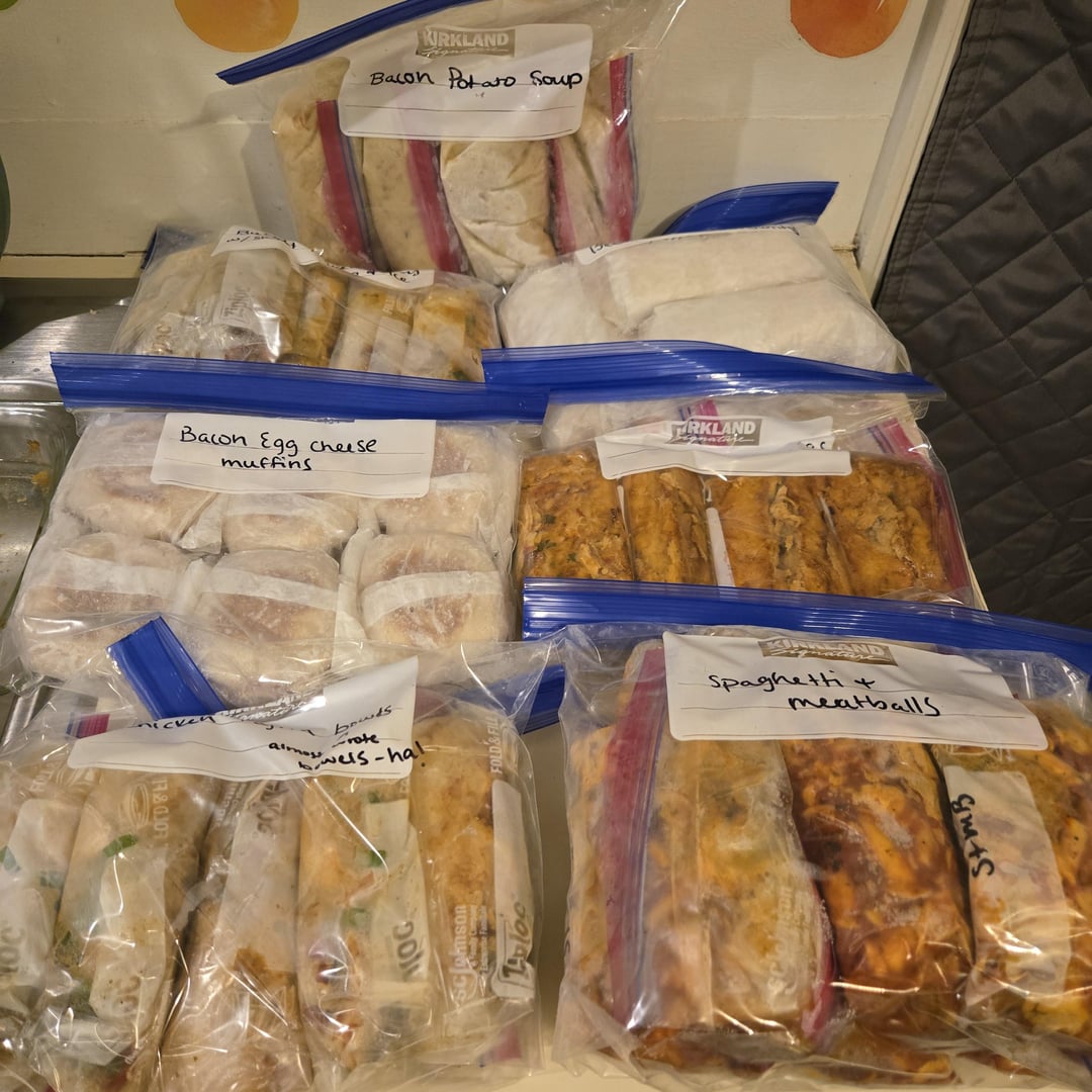Made: beef, bean and cheese burritos, spaghetti and meatballs, bacon egg and cheese breakfast muffins, creamy bacon potato soup, curry chicken with sweet potato and rice, fajita rice bowls and enchiladas.