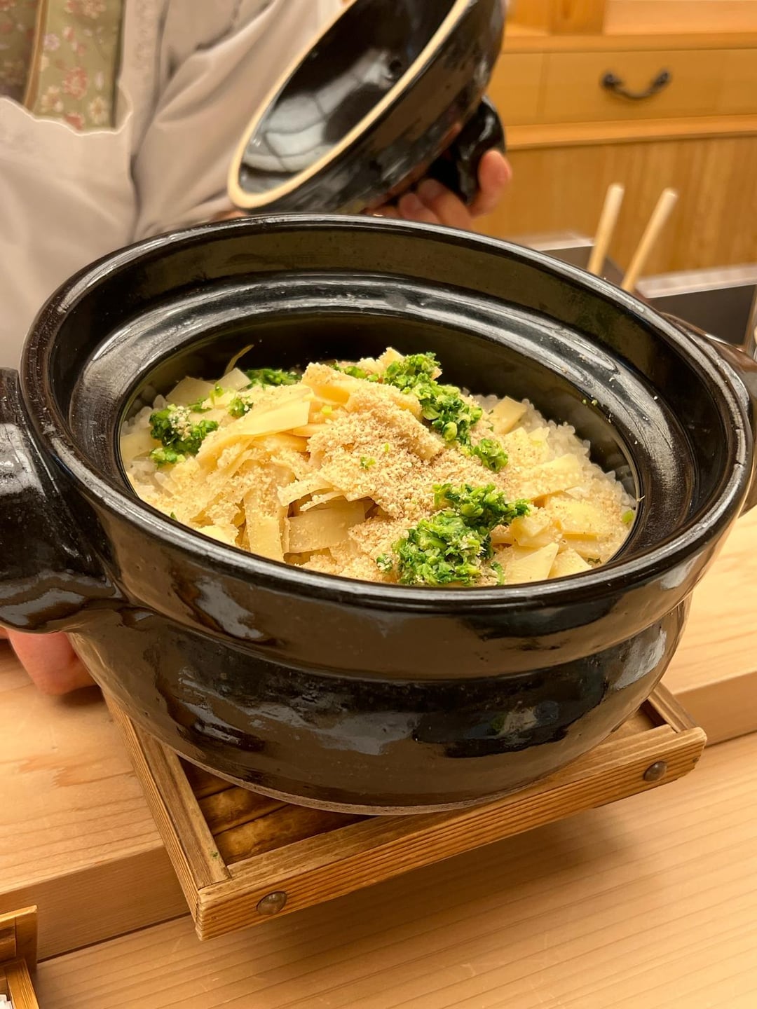 ++hamaguri, takenoko, wakame, kinome, huge hamaguri, sweet and umami, airy and slurpy wakame, numbing and peppery kinome. Every component was delicious.