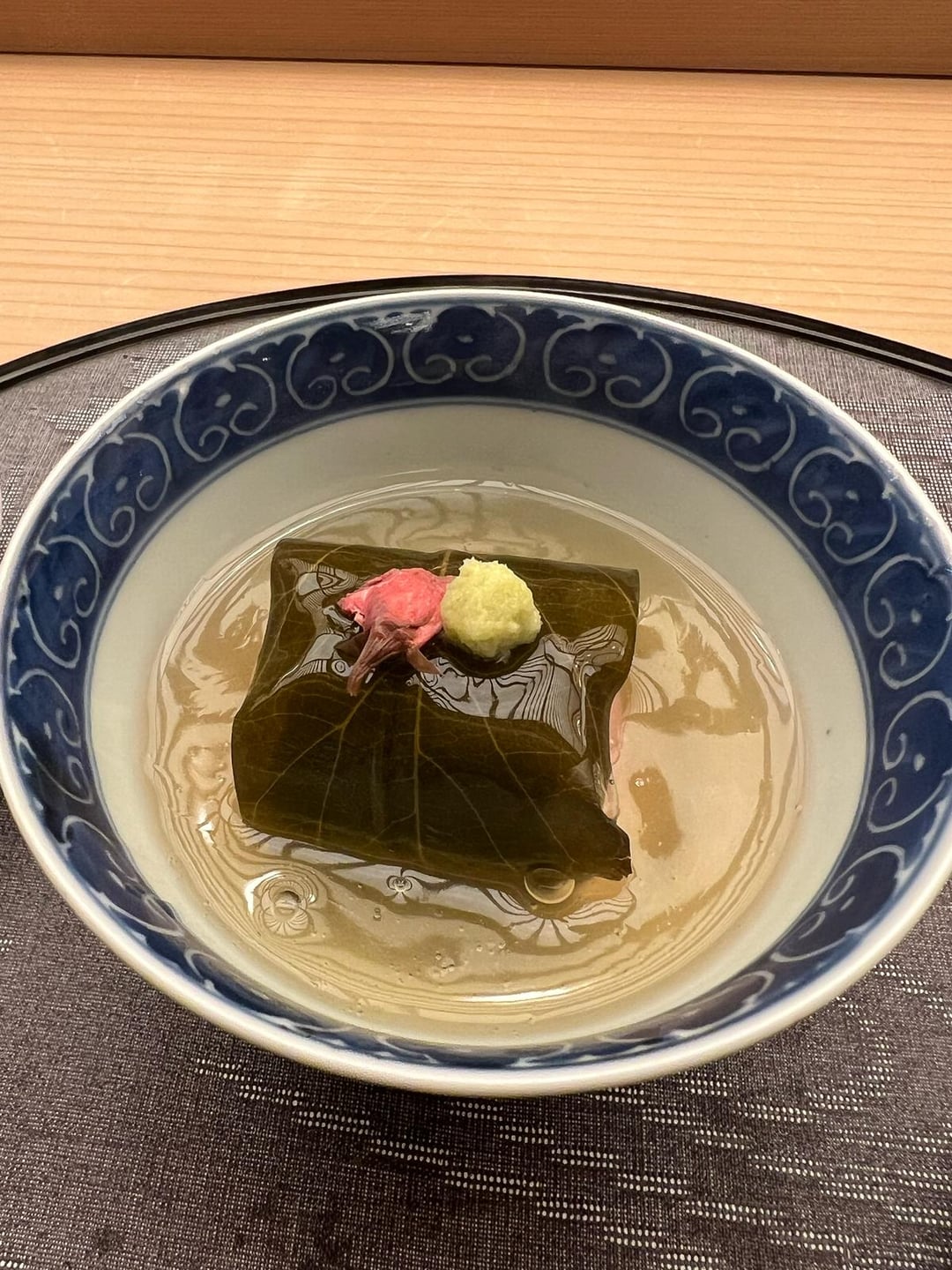 +tai wrapped in cherry leaf filled with Sakura rice
