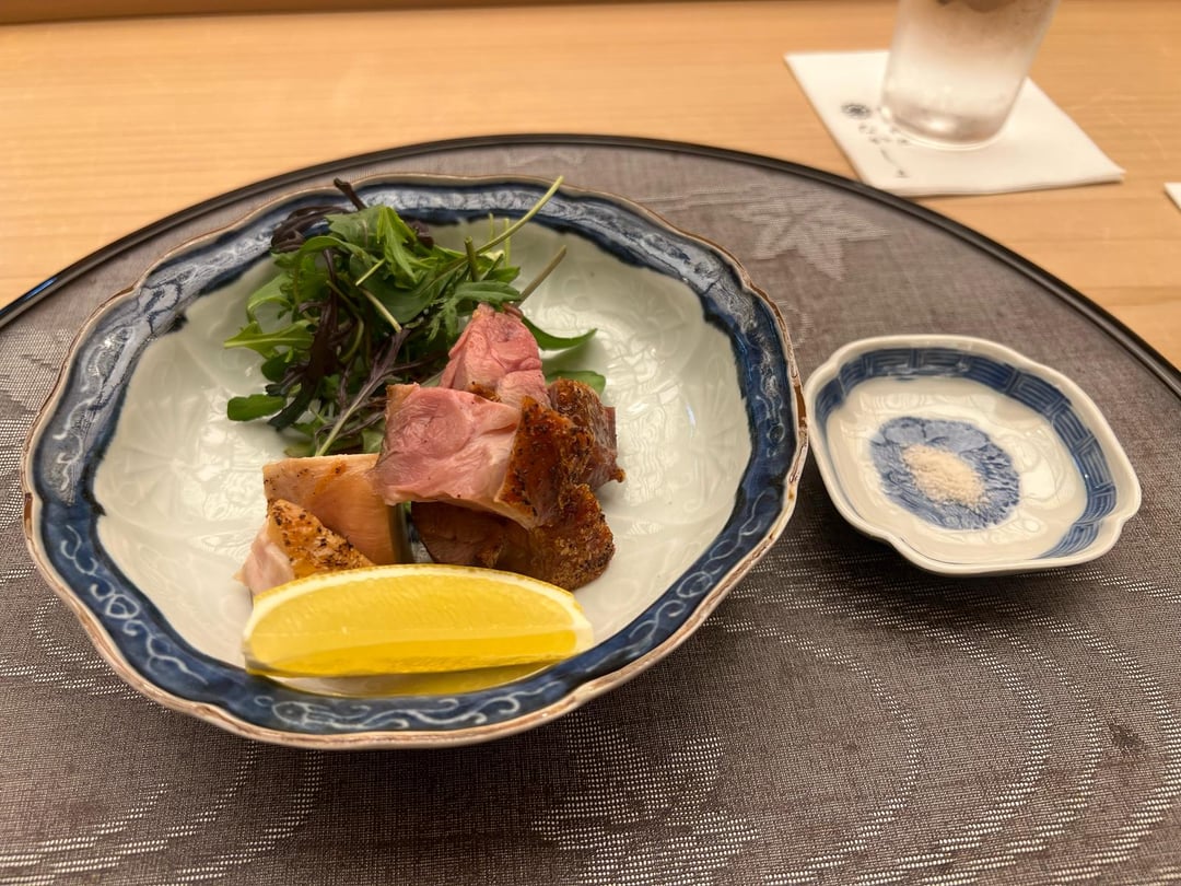 ~katsuo no tattaki, spring bonito is lean so we were told to enjoy the meatier flavor. I was hoping for a meatier taste. Still tasty.