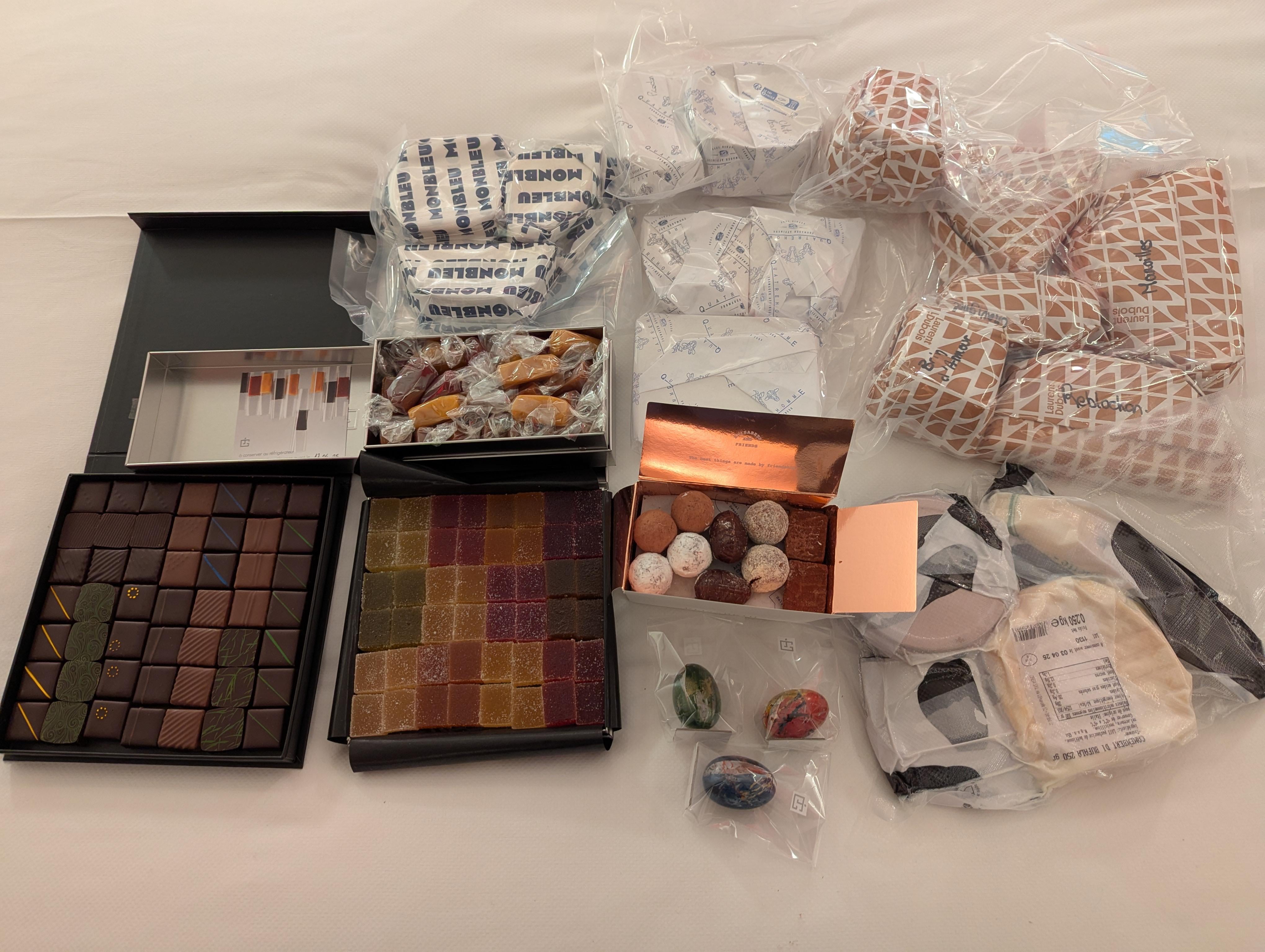 That's 19 only-in-France cheeses vacuum-packed and ready to fly home. Most of them are varieties we've never tried before, so this is gonna be fun! (Sorry for tainting the photo with other, less important stuff.) Photo of the spread, laid out, along with names, to follow in a couple days.