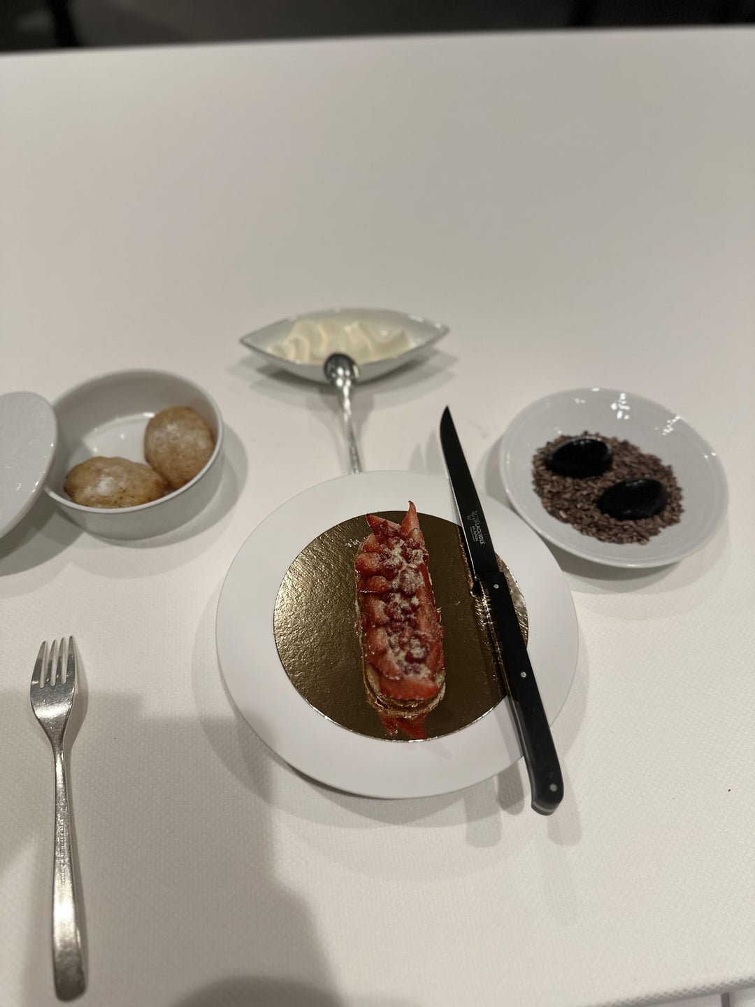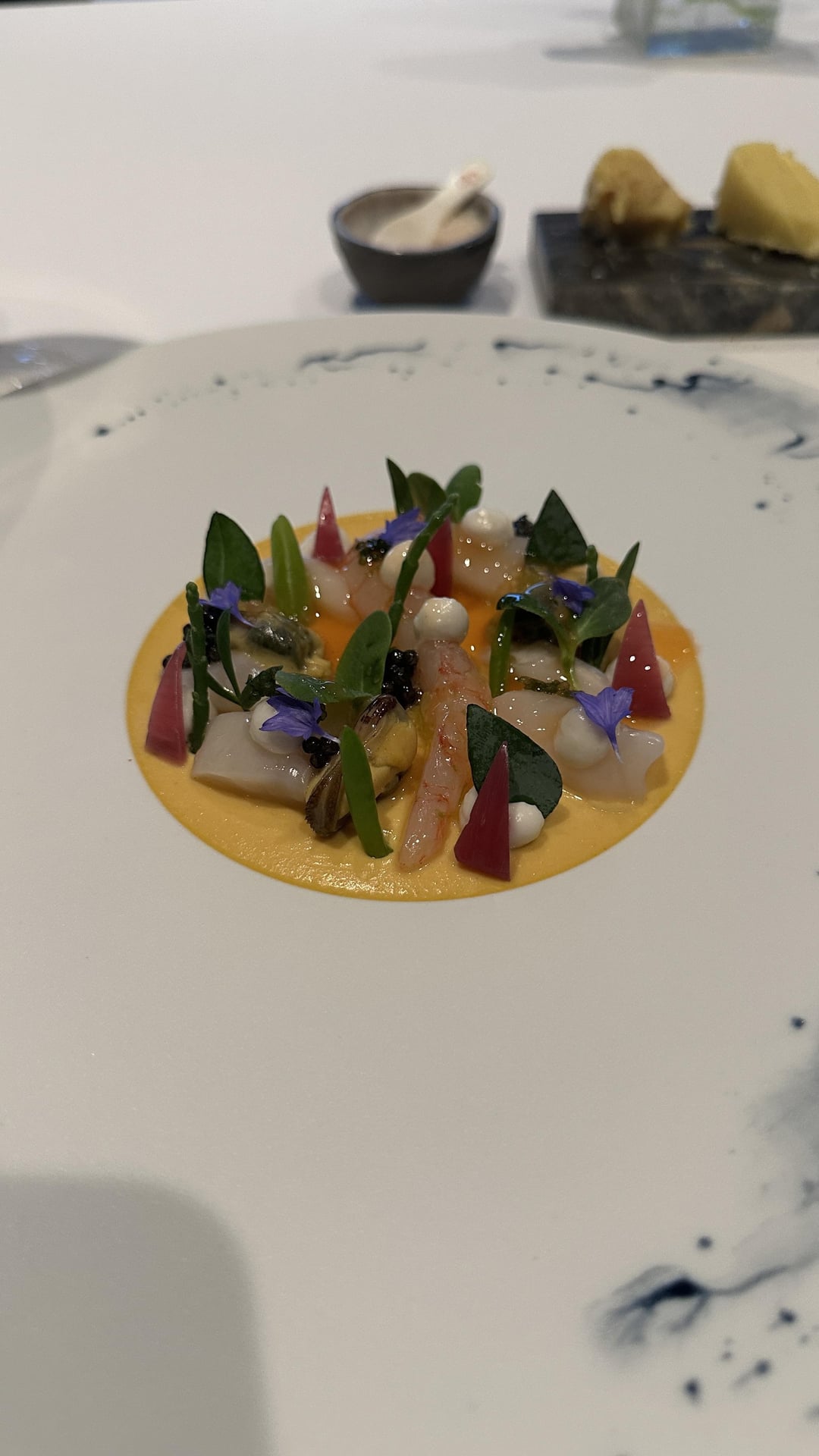 Aside from the food, the reason this restaurant has two stars is definitely the service. Everyone was kind and personable. They set utensils, plates, and glasses in unison. They also took away everything the moment our plates were clear. There was a particularly rude guest in an adjacent table who was hard to deal with. Saying things like “I didn’t know fruits de mer were raw, WHY DIDN’T YOU EXPLAIN IT TO ME?” And asking for things off menu left and right “Do you have any boiled or fried seafood?” as well as sending several plates back. Not once did professionalism drop from what we saw. They worked hard to try and meet the wild demands and did it with a smile. Felt really frustrated for the front of house staff but also really impressed how they handled it all.