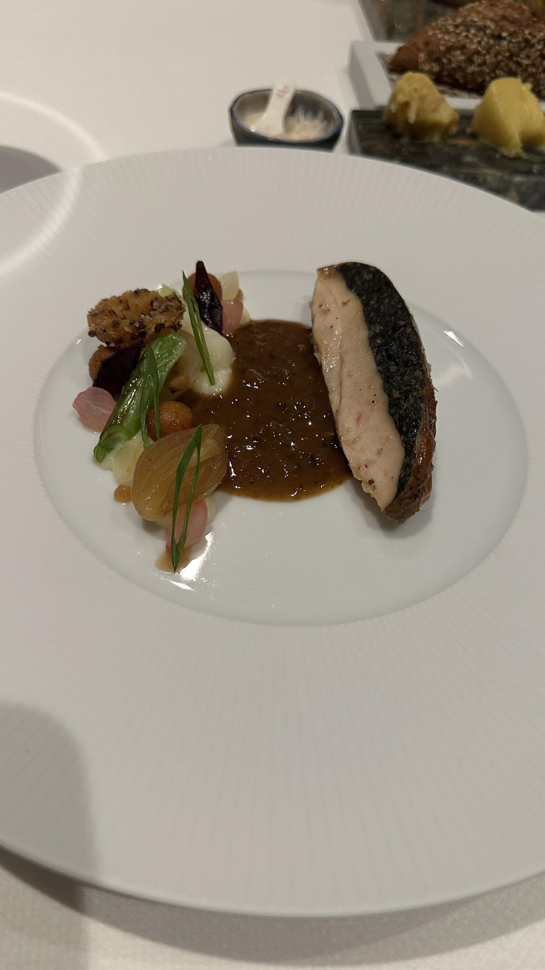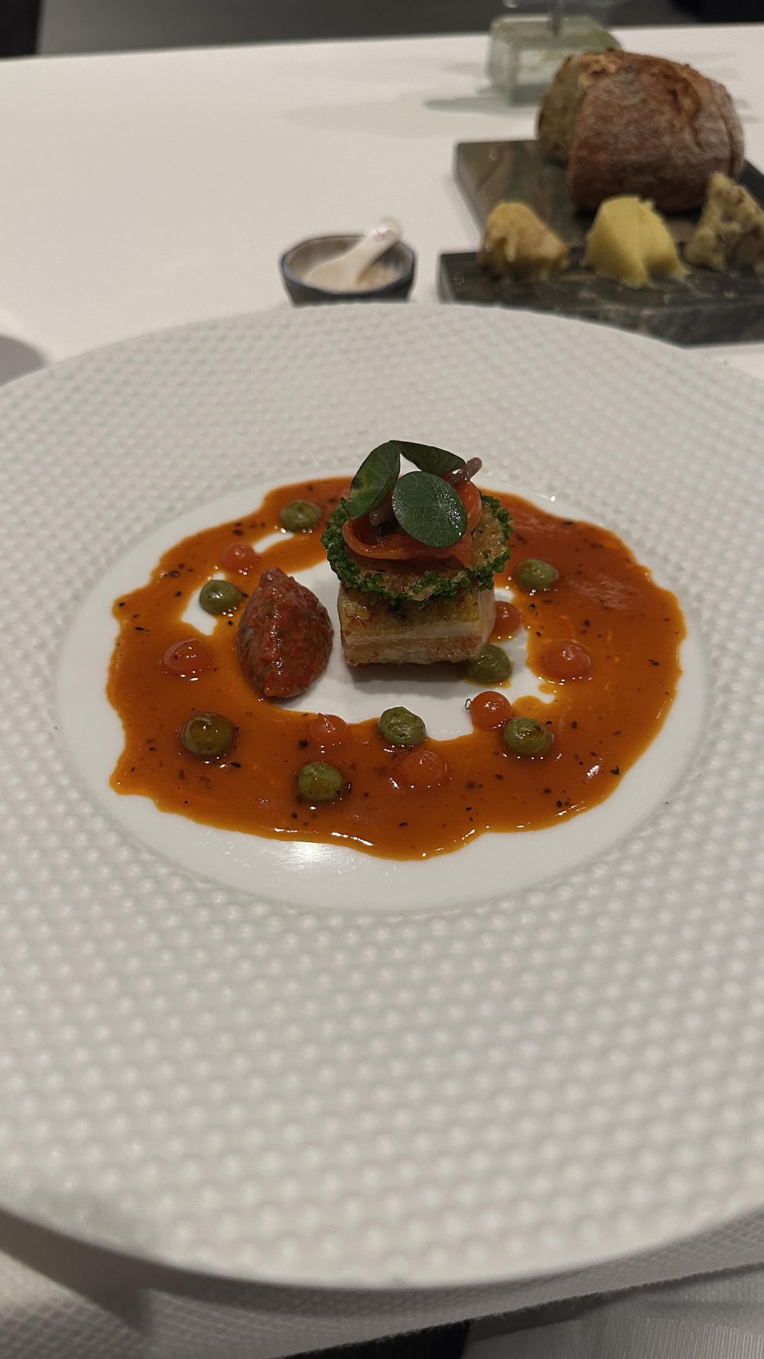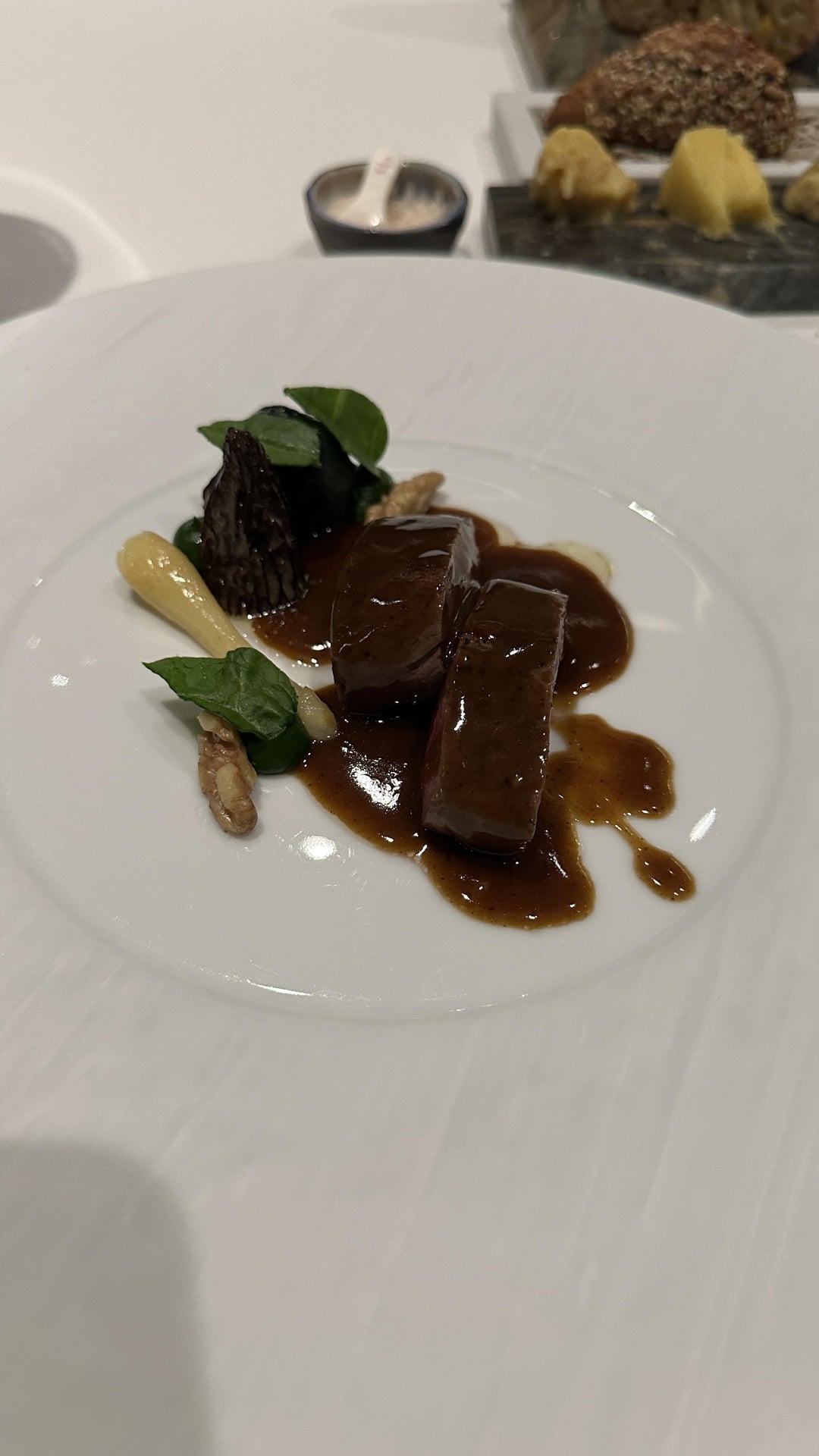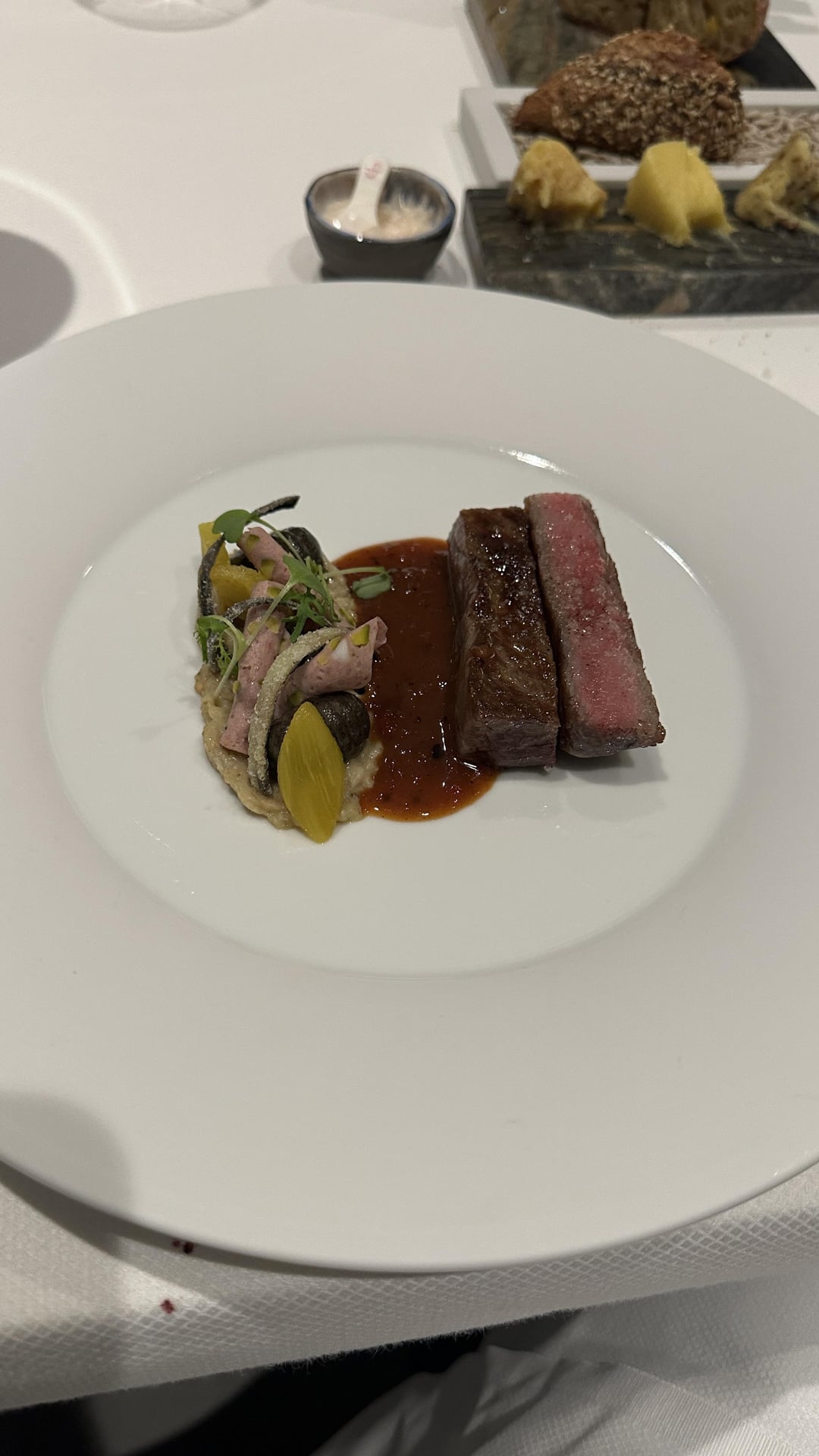 We both had the Signature experience and added the supplement instead of replacing the main dish. The food was impeccable. Every dish wowed us with its presentation and flavor, even the bread service. The Wagyu and Sea Bass were my favorite dishes. The cheese cart they have is impressive and we found a wonderful new cheese that we loved. This meal was our favorite in Amsterdam and we would easily go back for the food alone.