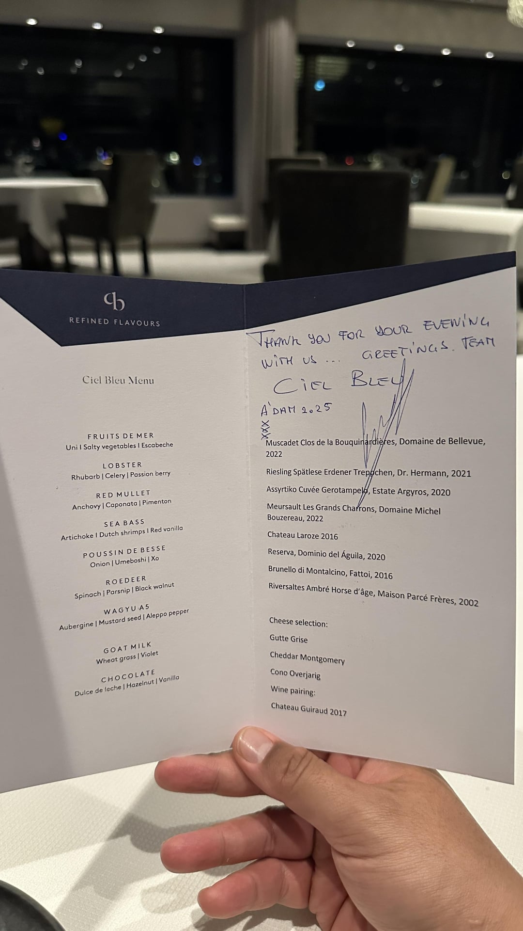 My wife and I were fortunate to dine at Ciel Bleu during our trip to Amsterdam.