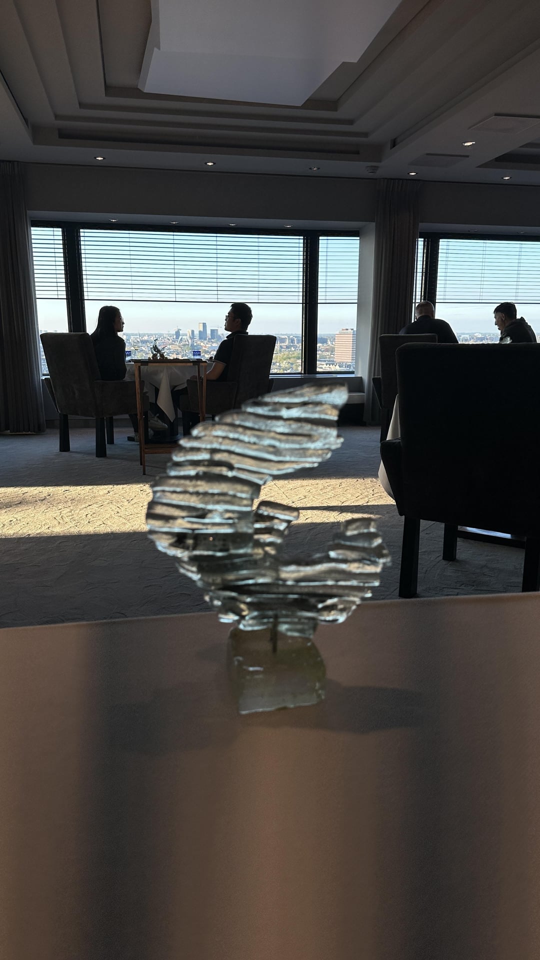 The interior of the restaurant is beautiful and definitely gives off a high end restaurant feeling. The view is also gorgeous. We sat at one of the couches towards the wall but still had a good view. Amsterdam does not have many prominent land marks like the Eiffel Tower or the Colosseum, but it was special to dine while watching the sun set over the city.