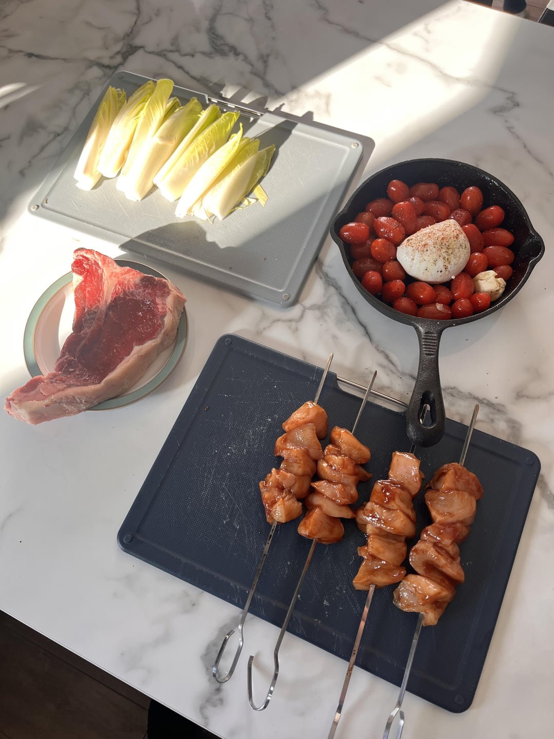 T-bone steak, chicken kebabs and sides. by fergohall 1 Comment thepantages 12 months ago What’s in there with the cherry tomatoes? Burrata?Write A CommentYou must be logged in to post a comment.