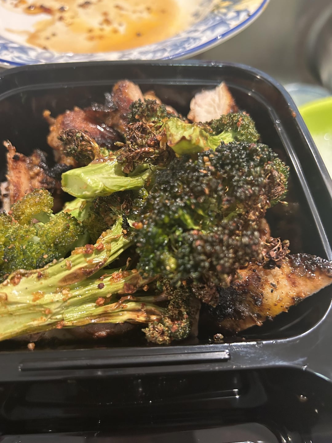 Grilled chicken, airfryer broccoli and Goya yellow Spanish rice.