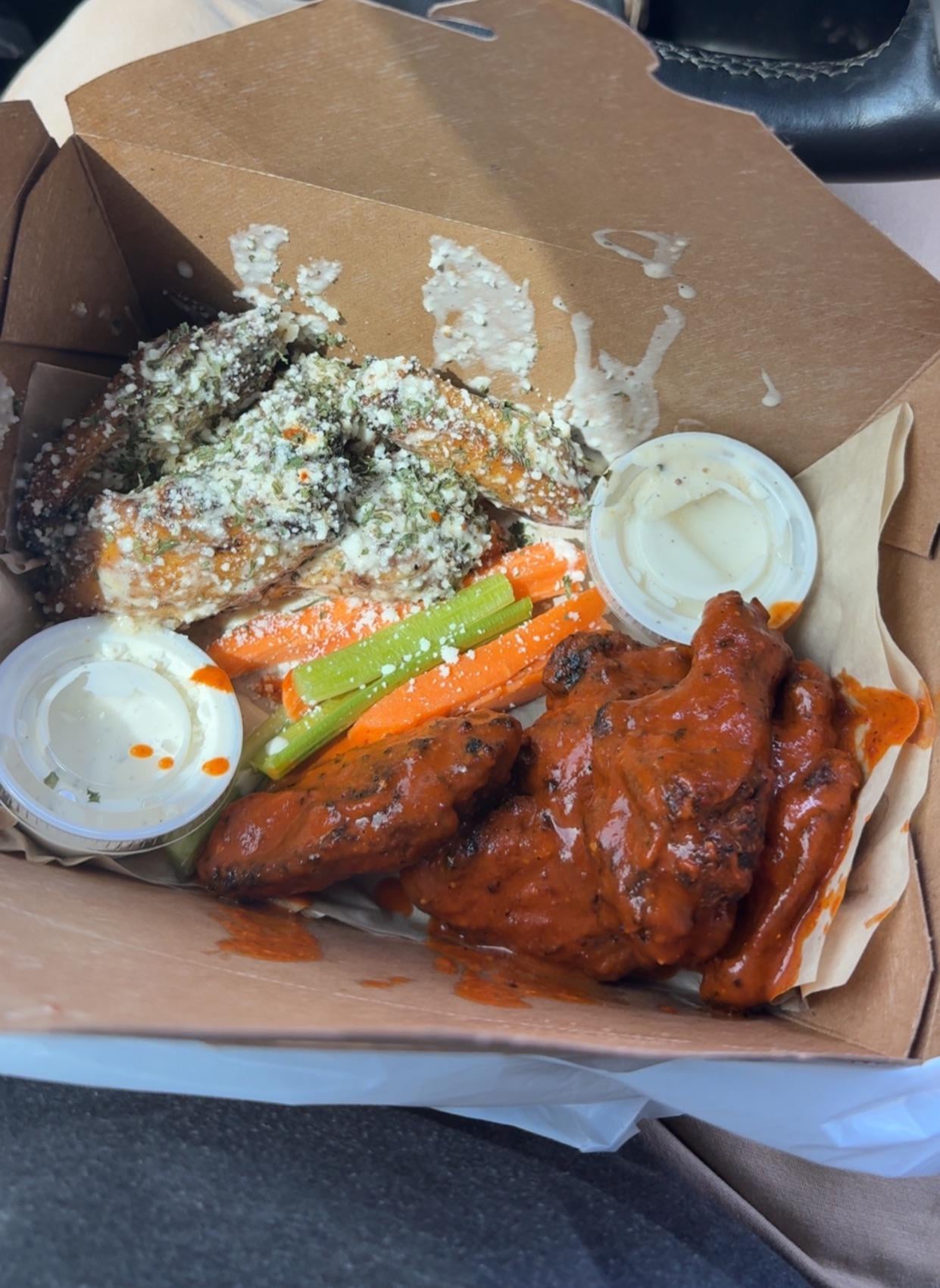 I cruised thru Omaha today and decided to try a local wing joint. And google led me to Everett’s. Tried a 10 pc that was fried and grilled. Half garlic parmesan and half extra hot. 10/10