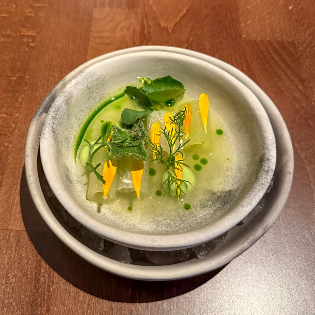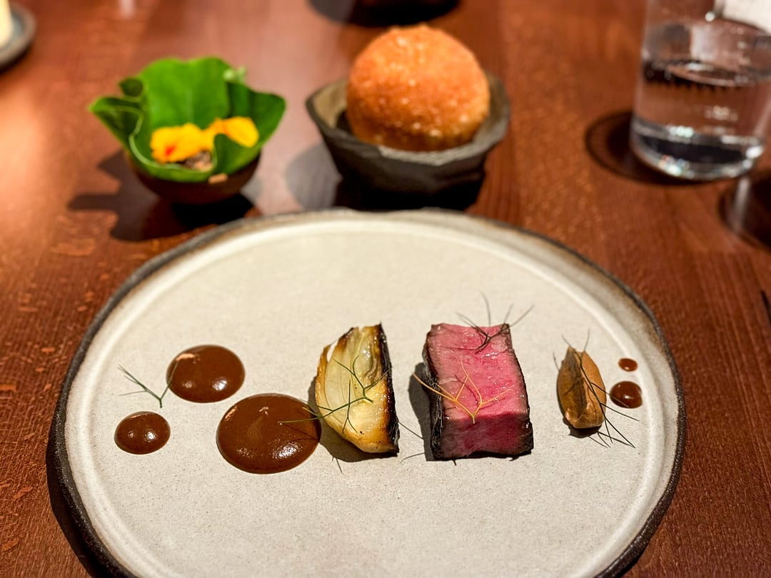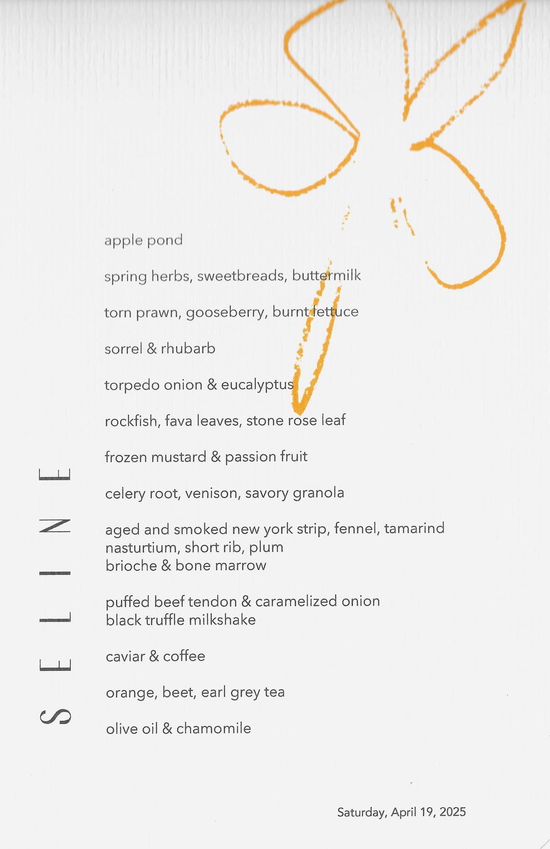 This was a very good meal and feels like a solid Los Angeles 2-star on par with Vespertine. Service was very attentive yet casual. All the flavors resonated with my palate, and the food felt distinctly tailored to this restaurant. My wife thought the repeated combination of citrus plus nasturtium got a little repetitive. The 45-day dry-aged New York steak course is easily my favorite dish so far this year.