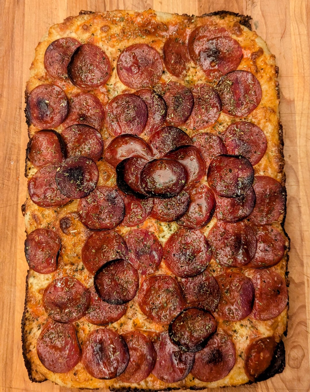 Cast Iron Pie with pepperoni, hot honey, oregano.by MichaelScott333 Write A CommentYou must be logged in to post a comment.
