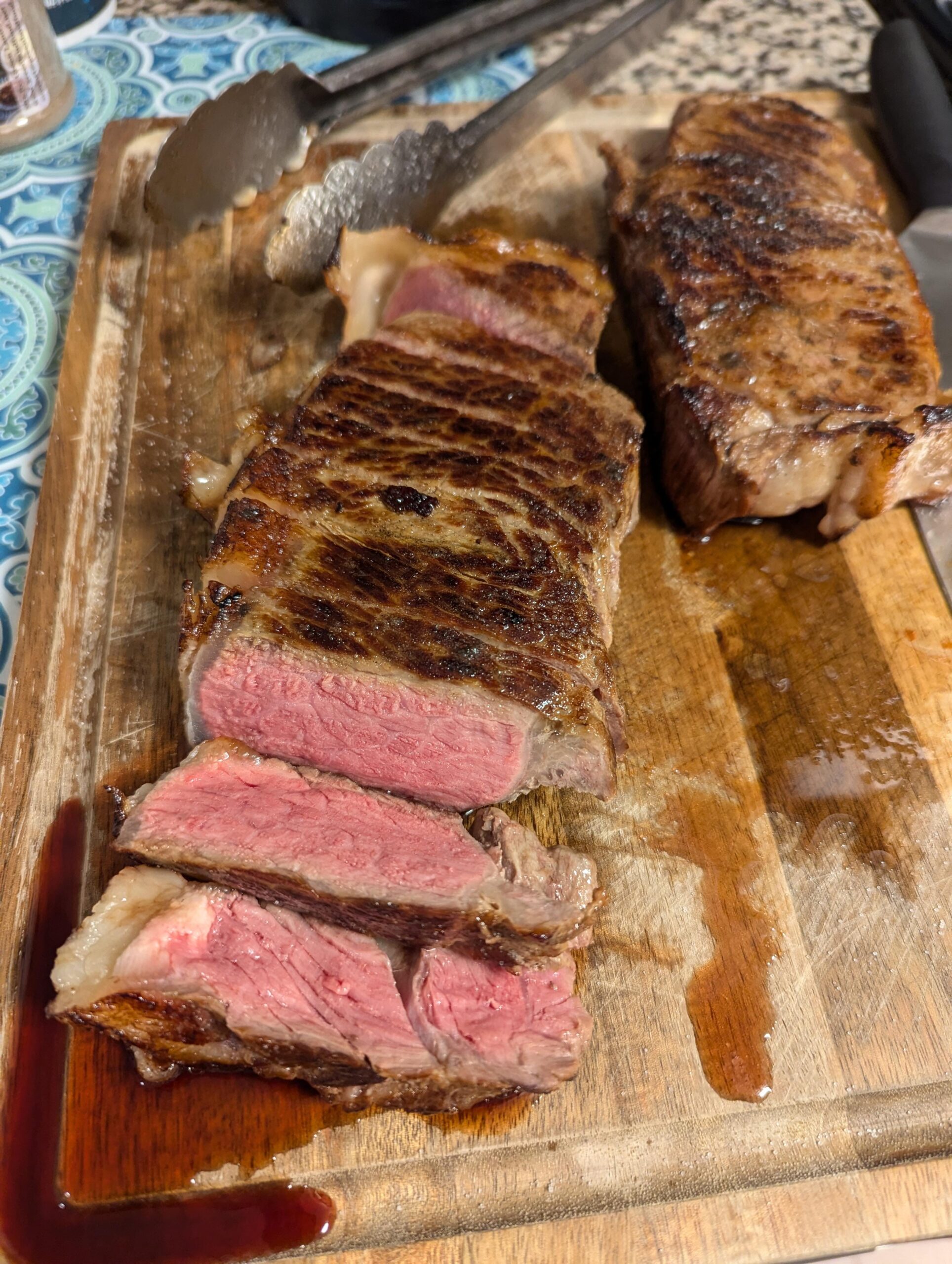 Oh damn, here come the flood gates. I’d be happy if I ordered a medium rare and this came to my table. Arguments will be made on either side, rare or medium. Great temp for a new York because it generally has some fat that gets nice as it warms up.