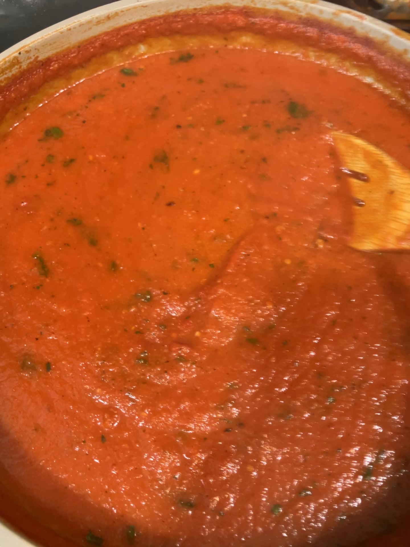 PaigeLeigh03 7 months ago I made it without a recipe really but here’s everything I used: • 1 28oz can Contandina Whole Peeled Roma Tomatoes • 1 28oz can San Marzano Whole Peeled Tomatoes • 1 can Hunt’s Fire Roasted Tomatoes • 1 can Hunt’s no sodium Tomato Paste • 1 full size can of Low Sodium V8 • 1/4 cup puréed roasted carrots • 7 Garlic cloves • 1/4 small red onion • 7 Scoops of tasteless protein powder • Unknown amount of Sunflower Oil • Unknown amount of lightly dried Italian Herbs • Unknown amount of Red Pepper Flakes • Unknown amount of Smoked Paprika • Unknown amount of Soy Sauce • Some amount less than 1tbsp of sugar (All unknown amounts are also very low amounts).