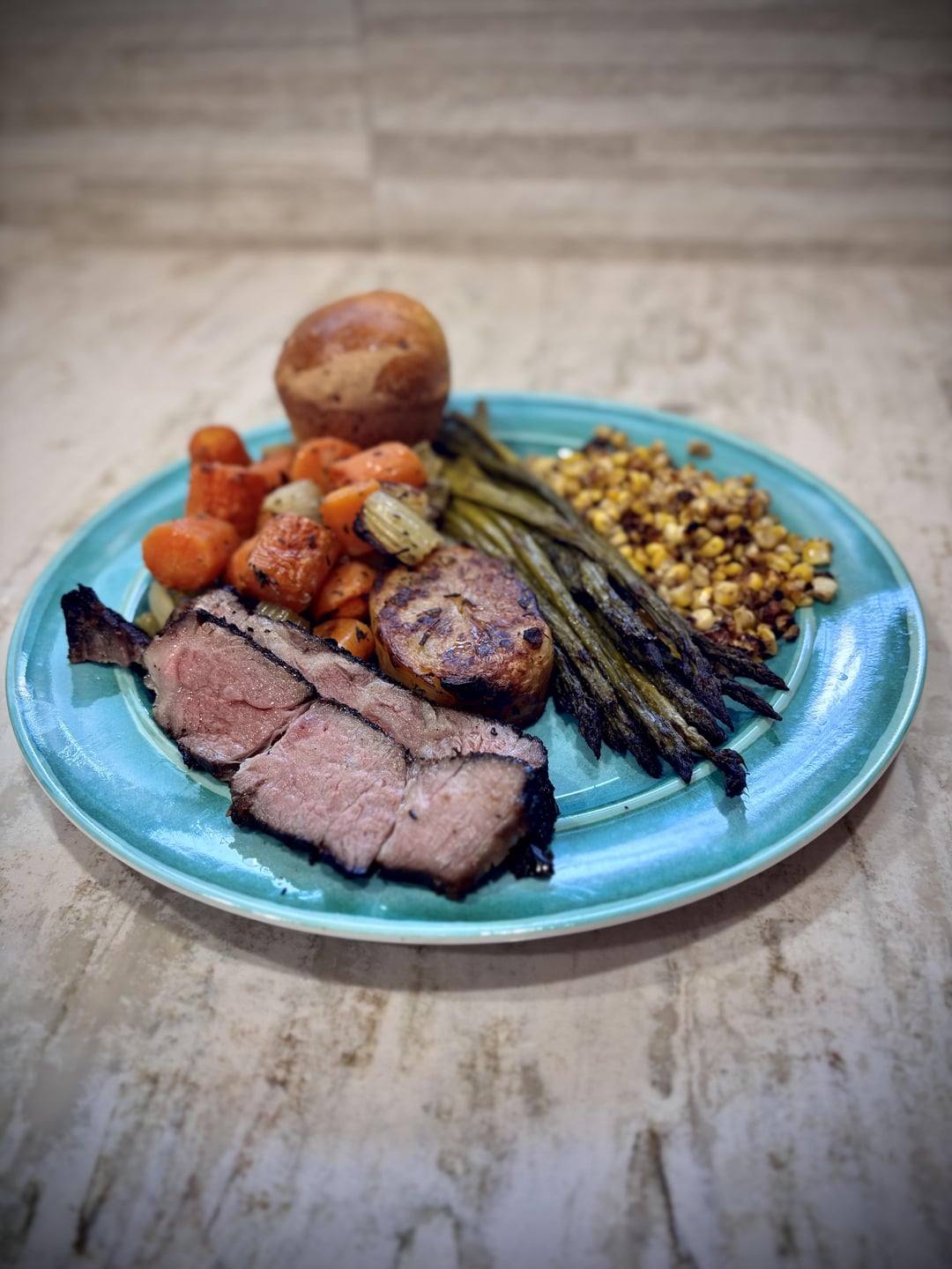 My first time doing a roast. Man it was good. 137 for 12 hours. Did the corn and asparagus with it( had room) and roasted them afterwards.