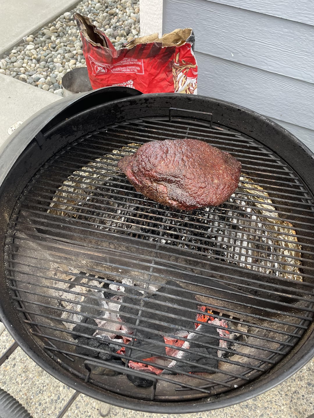 Cooked at 250-300 (windy day made it hard to control temps) on my Weber Kettle until 125. Pulled it off and got the grill ripping hot for the sear.