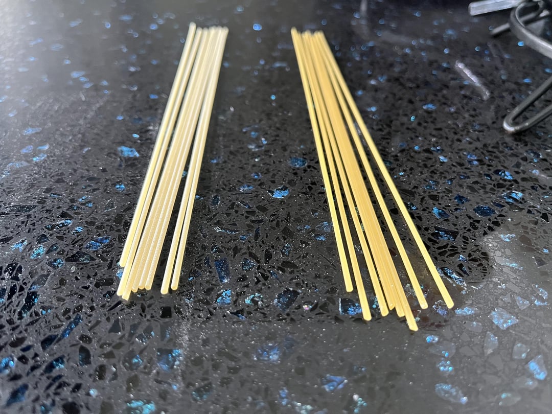 I extrude about 10-15 hours every week and to me, it looks like the one on the right has been dried at a higher temperature. If you go low and slow, it looks more like the pasta on the left. But slower takes longer so it’s more expensive to accomplish and the person paying the bills usually decides to go at a higher temperature so the batch is completed faster.