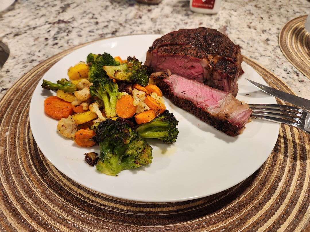 (Pic with the veggies is leftovers the next day, reheated to 135 in sous vide.)