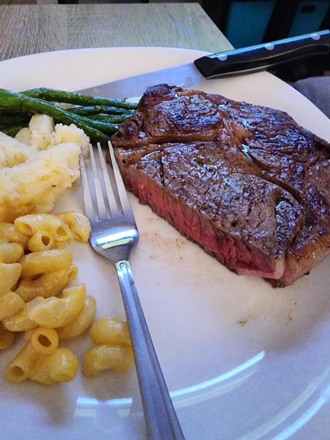 As they would say in wolf on wallstreet, you are killing it with the sides there my guy. Nothing like some asparagus with a steak. Beautiful pink in the middle too, top shelf. Did you baste it in garlic butter?