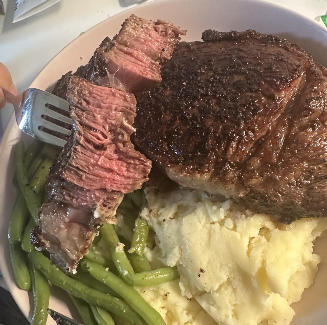 Try boiling some broccoli next time. (Add salt) Place your steak on your plate and place the broccoli in the pan after 5 mins of high boil. Add some cheese. (I use ghost pepper jack) Let the cheese melt onto the broccoli (should take no longer than 1 minute) season it with pepper and if you got any, add mango habanero spice. It’s really good, the best. Try it out! & who cares about relationships lol