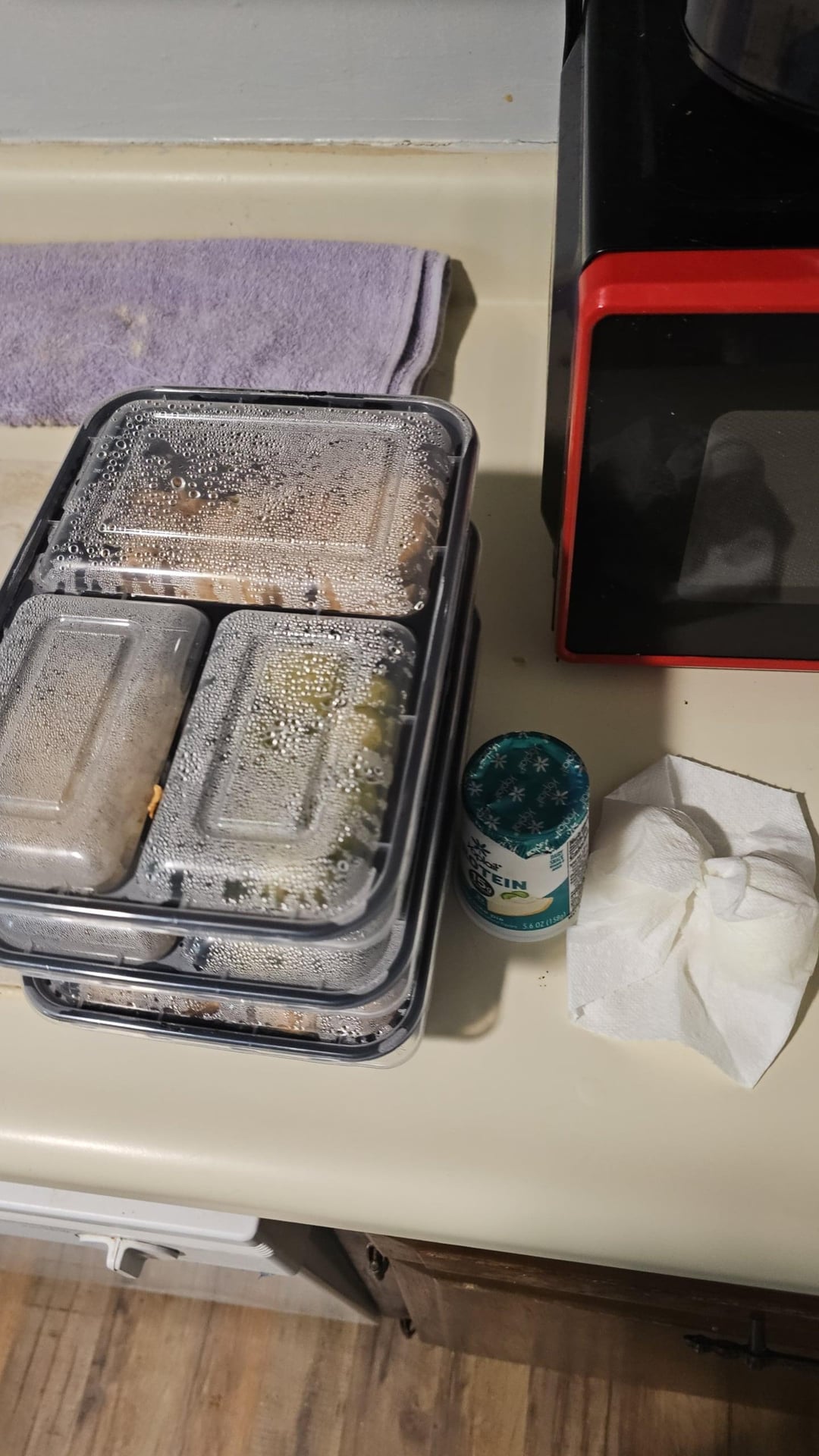 Made my first set of meal prep last night to try and lose weight and save money. I work in car sales, so pretty sedimentary and always got fast food for convenience sake. It's a mix of chicken breast, brown rice, and broccoli or brussels sprouts. Attached macros too!