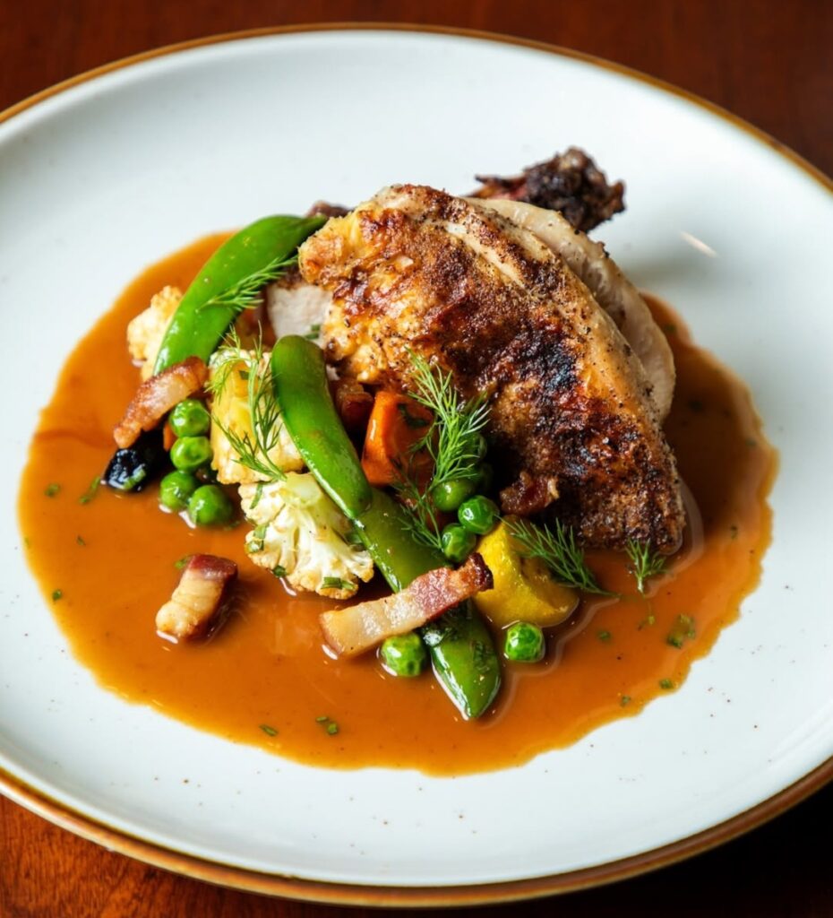 “The chefs started with their favorite bistro dishes and dishes they perfected at fine dining restaurants and then took those dishes and refined them and modernized them,” Weisnicht says. “They construct dishes from what’s available and in season and put together a classic menu.”