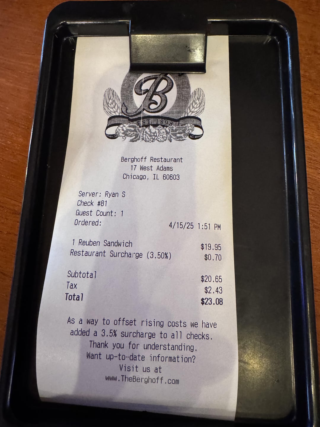 I had their Reuben for lunch while I was in the loop a few years back, but didn't document at the time. Well I walked in for nostalgia sake and still had a good meal.