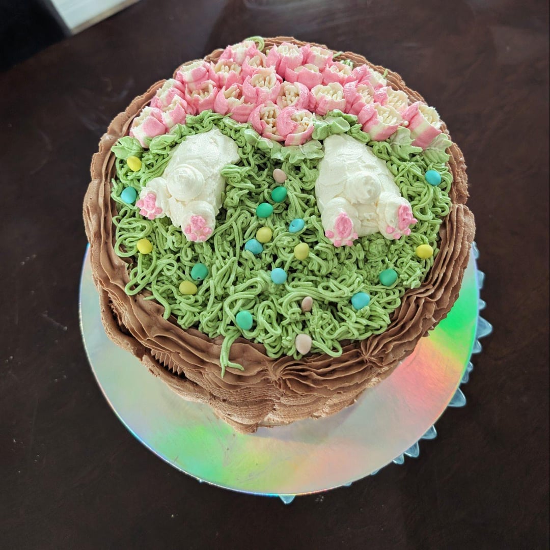 Marble cake with chocolate and vanilla buttercream. Bunny butts in a basket!by chiefybeef 2 Comments Felicity110 9 months ago What kind of flowers. What does inside look like jpaulamcg 9 months ago Cute! Good job.Write A CommentYou must be logged in to post a comment.
