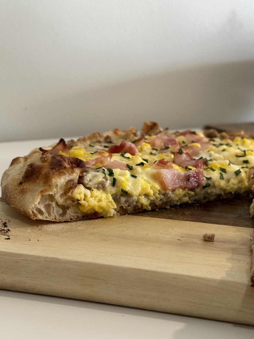 Scrambled egg pizza is an absolutely wild idea at first blush, but thinking about it just makes me want it more.