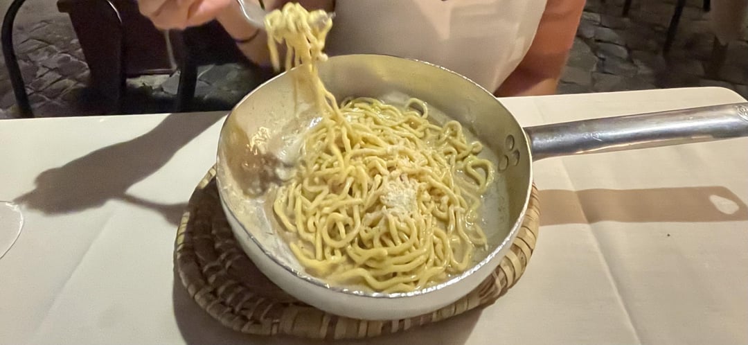 I’ll go first. The Cacio e Pepe at Taverna Trilussa is Rome is a pasta that I still dream out. Not the prettiest photo but everything about it was perfect.