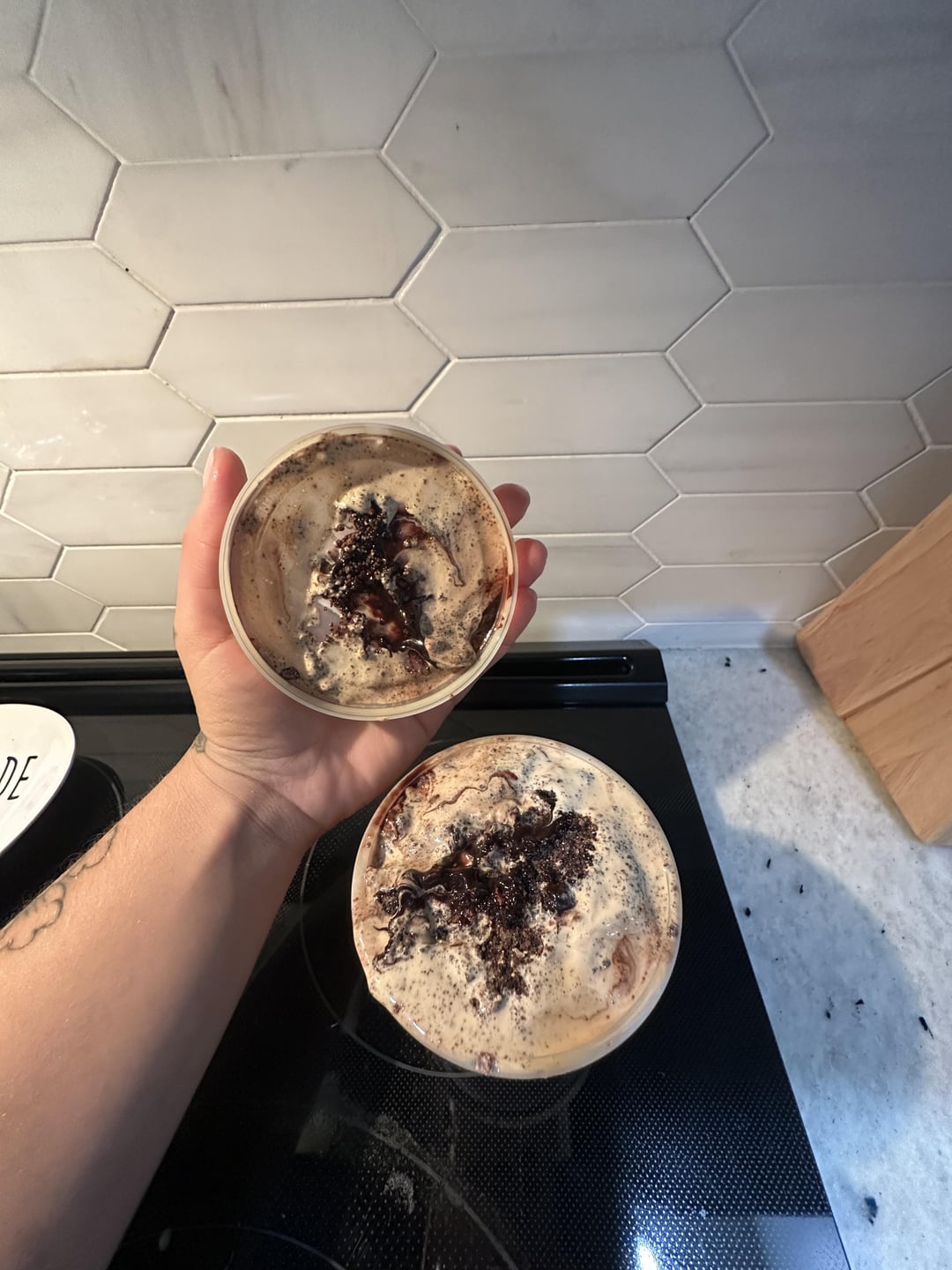 Pro’s- keep in mind, i’m not the biggest fan of coffee ice cream. i thought i was going to hate this. i always thought they were always way too coffee forward, terrible texture, either super sweet and fake tasting, and weird. this pint was the EXACT opposite. the coffee flavor was present in such a graceful, silky, and balanced flavor & texture. not too sweet, not too bitter. so rich and balanced, super creamy, and the mix-in’s were the biggest compliments to this ice cream. i loveeeeee cafe panna’s oreo brittle, it’s a delightful treat and i had it in every bite. the chocolate coated almonds are like crack to me. i could inhale those. i loved them in this pint entirely. the flavor of the fudge was so spot on, it was silky, evenly distributed throughout the pint as well. it was great. i’d so splurge on this pint again