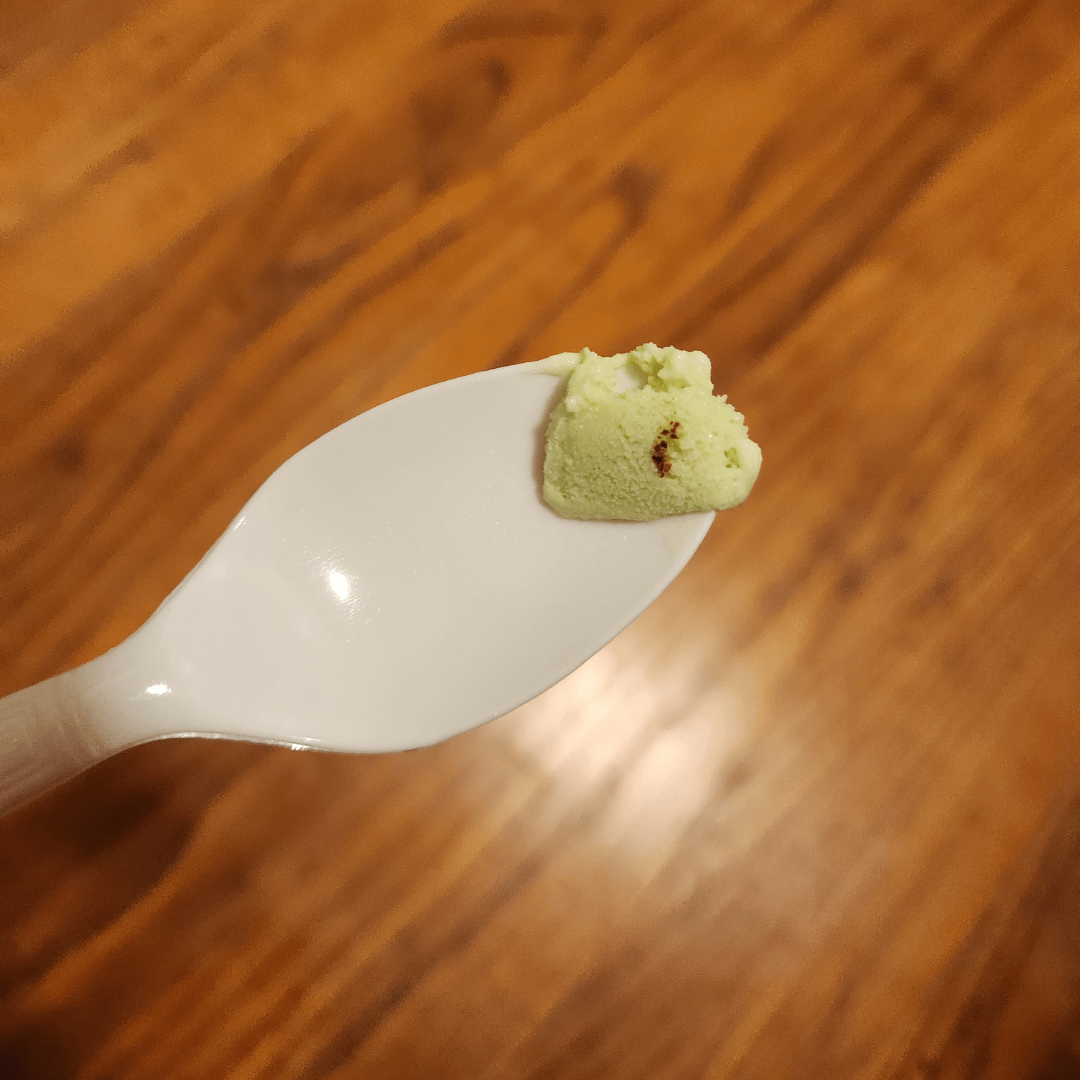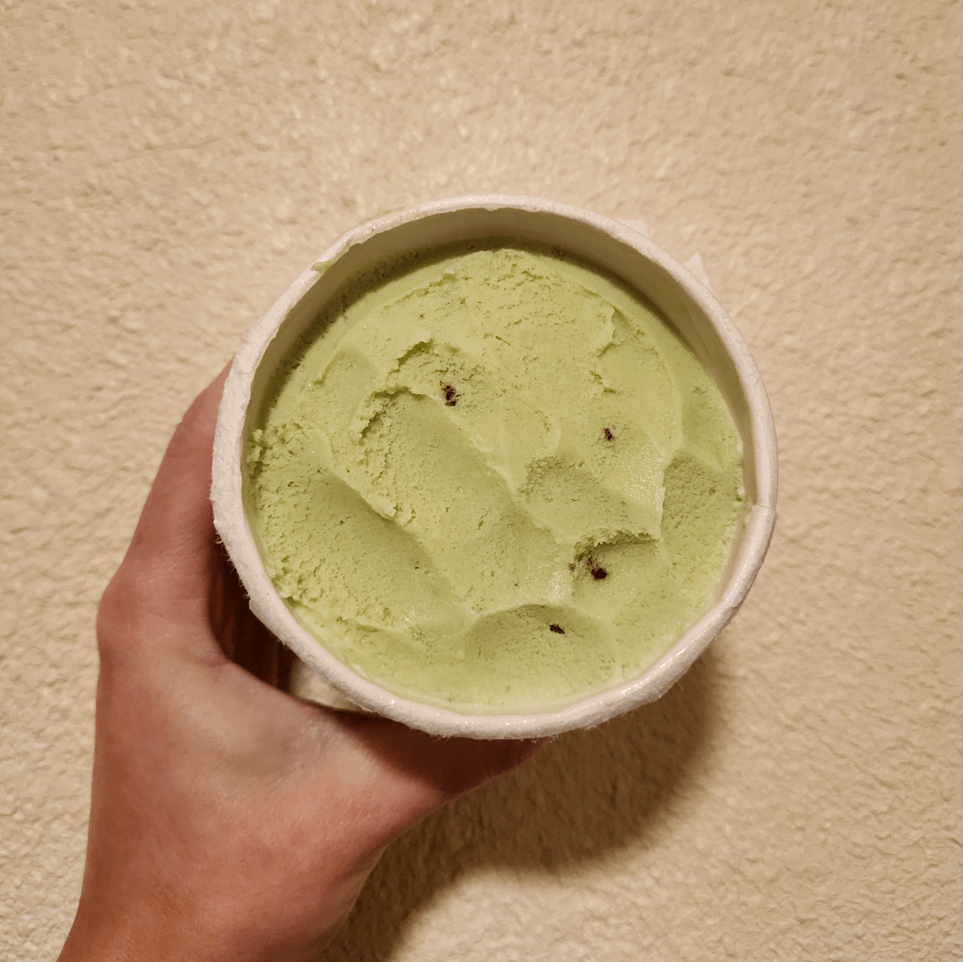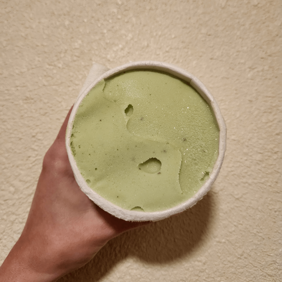 I liked the green color when I opened the pint. I saw some minor freezer burn on top, which is totally fine. The issue was that even when I got past the top layer, the texture of the ice cream was still very gritty. To be fair, this absolutely may have been because it got warm then froze again during distribution. Who knows.