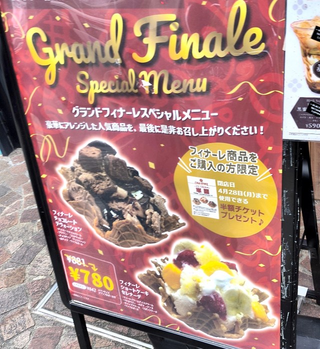 When he arrived, he saw he wasn’t the only one heading here for a farewell ice cream, with a number of people gathered out front, tucking into Cold Stone tubs. Looking at the store sign, he found that the branch was offering a Grand Finale Special Menu, starting from 1 April, with a small discount on two decadent options: the Finale Chocolate Devotion and Finale Shortcake Serenade.