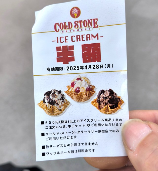 ▼ Then, after receiving his order, he was handed a coupon for a half-price ice cream, valid until 28 April.