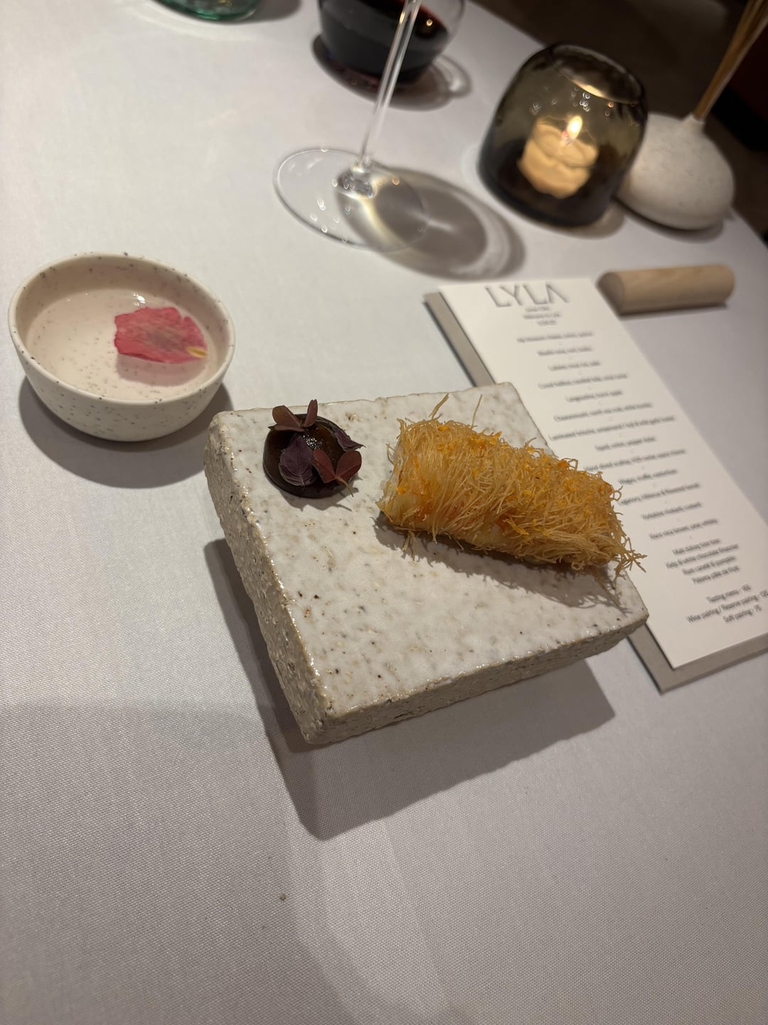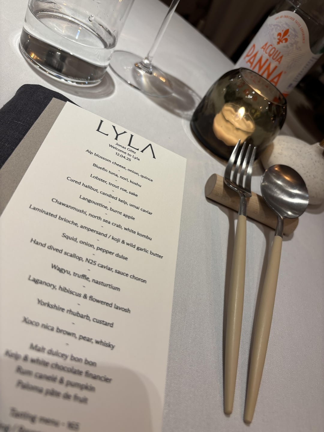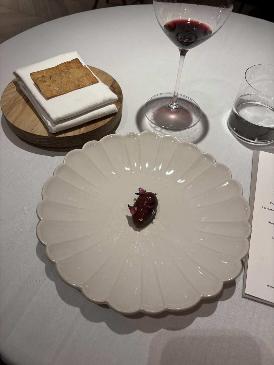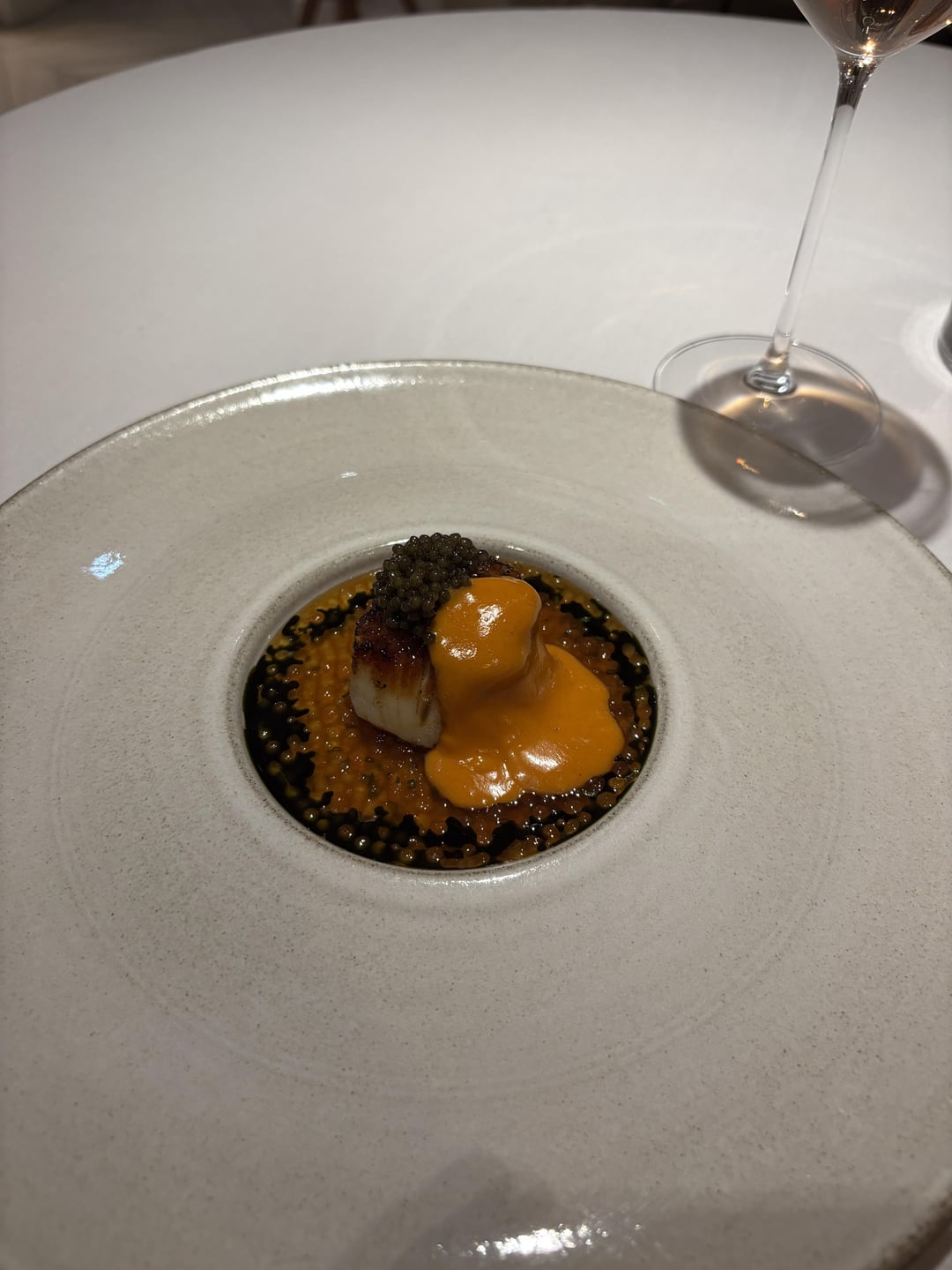 This is an absolute crazy new 2025 1*. The experience began with an aperitif in the bar room which ist located in the First Floor where you can enjoy wine, Champagne or house Cocktails together with opening bites made by the head Chef in front of you. After that they lead you downstairs in the dining room which is located right in front of a Clean and calm Open Kitchen. The Menu was huge and the wine selection perfekt to the dishes with a Lot of perfectly cooked seafood and a nice wagyu as a Main Highlight in the Menu. This Restaurant was so nice, even as a Young solo dining Person they treated me Well, die some Smalltalk and made me feel comfortable. And fun-fact: when it comes to the Main dish (the wagyu) the present you a wooden case full of knifes and you kann choose a handle which you Like the Most. 🙂