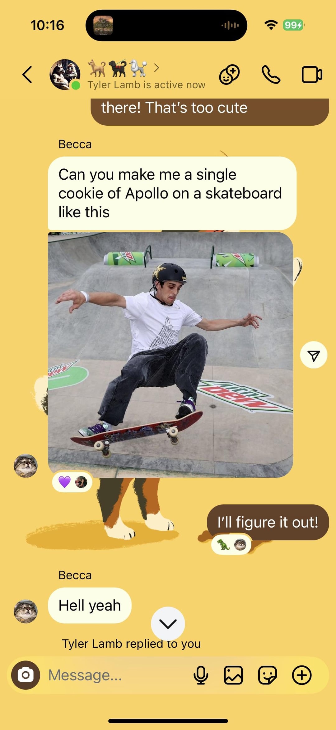 At his paws? A custom-designed skateboard etched with runes and claw marks of past adventures.