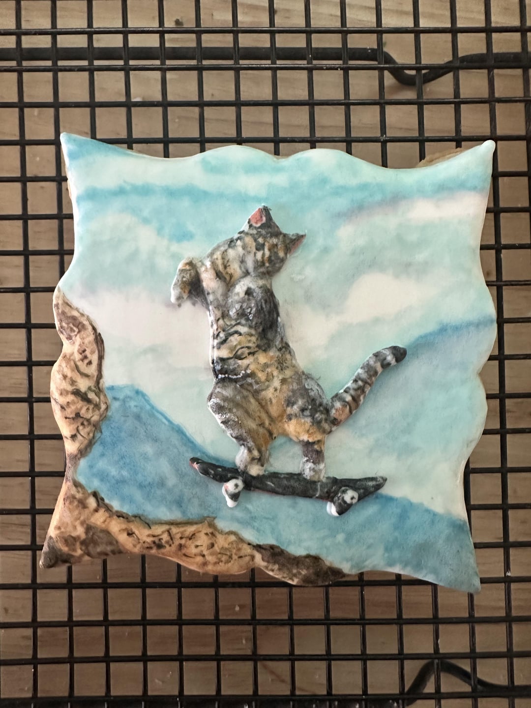 Tail flick. Pose struck. Apollo, conqueror of mountains, lord of the longboard.