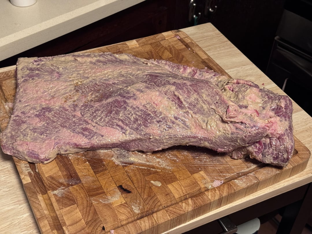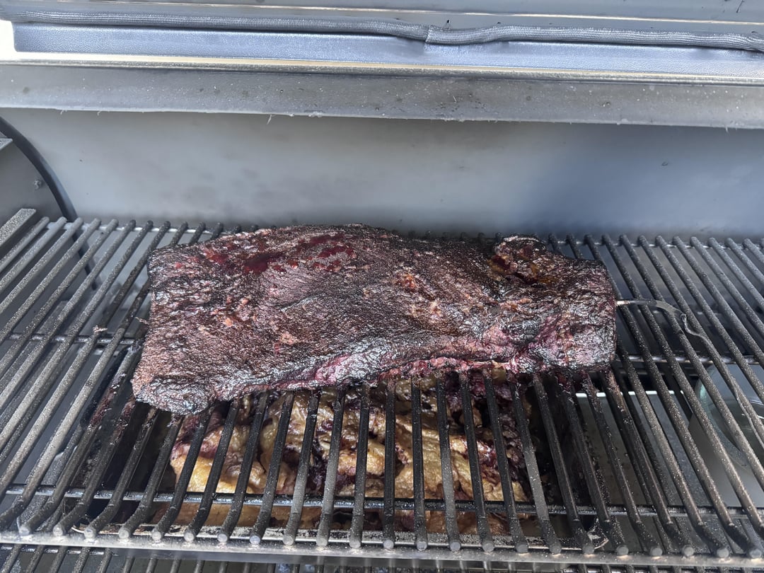 I don’t use a binder on briskets that usually fucks with the bark, next time don’t touch the bottom at all.. top fat cap leave 1/2in thick…