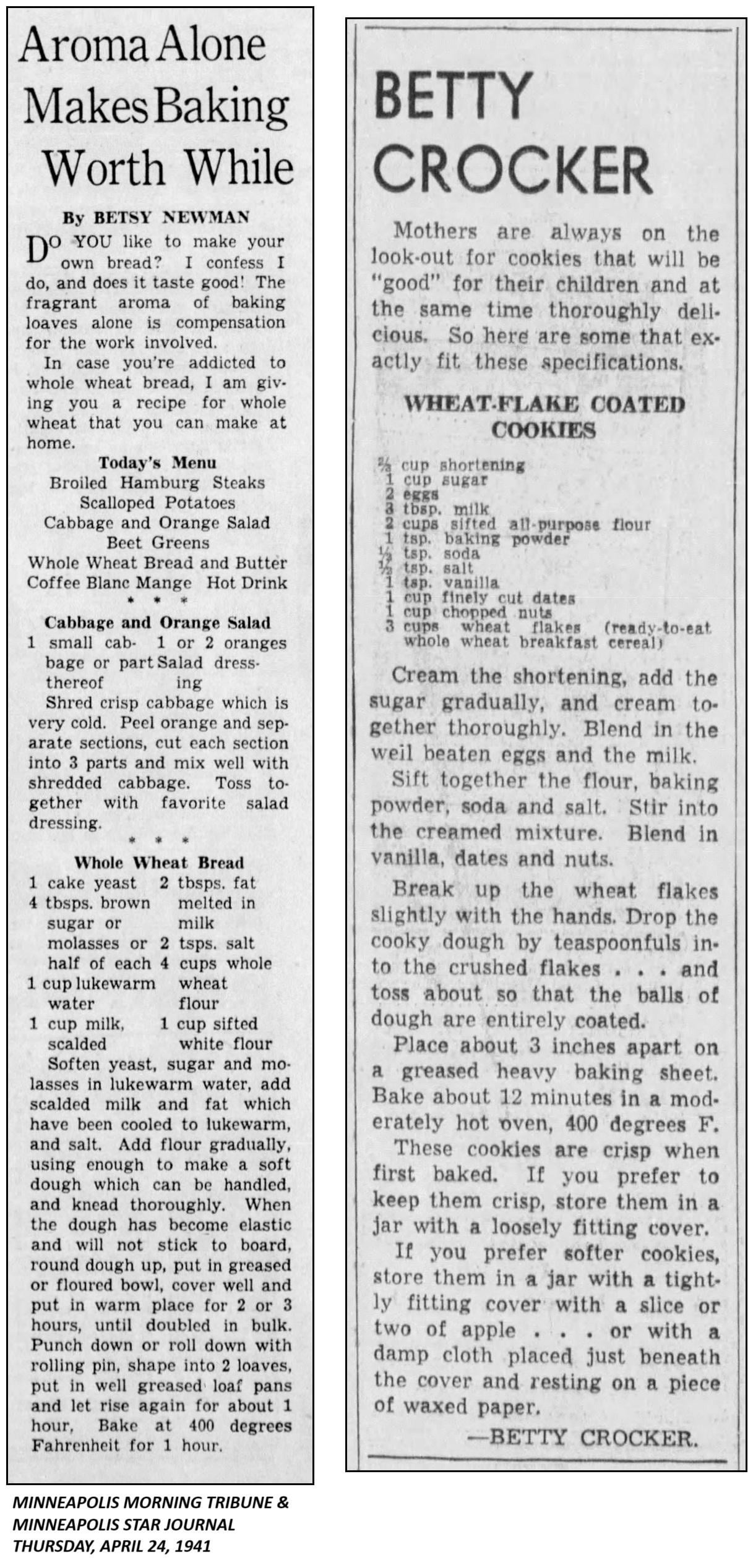 April 24, 1941: Cabbage and Orange Salad, Whole Wheat Bread, Wheat Flake Coated Cookiesby MinnesotaArchive 1 Comment Fomulouscrunch 10 months ago Looks like 1940s “health food”.Write A CommentYou must be logged in to post a comment.