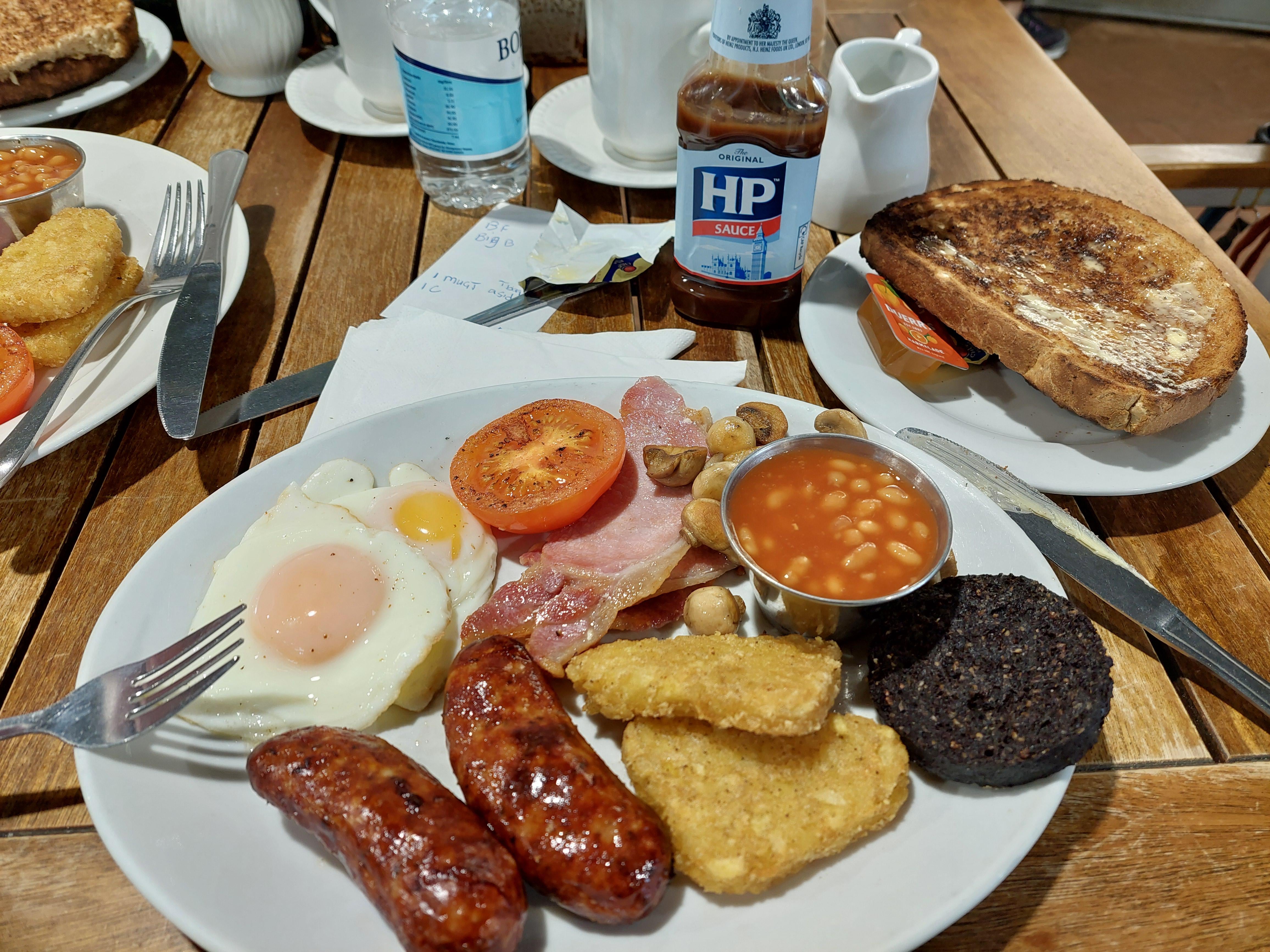 £10.45 for the regular brekky (1 egg, 2 bacon, one sausage, no black pudding) but I opted for the £11.45. Extra quid gets you black pudding, and an extra sausage, bacon and egg. Yes for a quid!!. 3 pieces of bacon!! All cooked to perfection. Quality thick bacon, nice eggs and butchers sausages. Hash browns are from frozen but still cooked real well. Farmhouse bread. I know some purists dont like ramikins but its a minor point. Great service 10/10