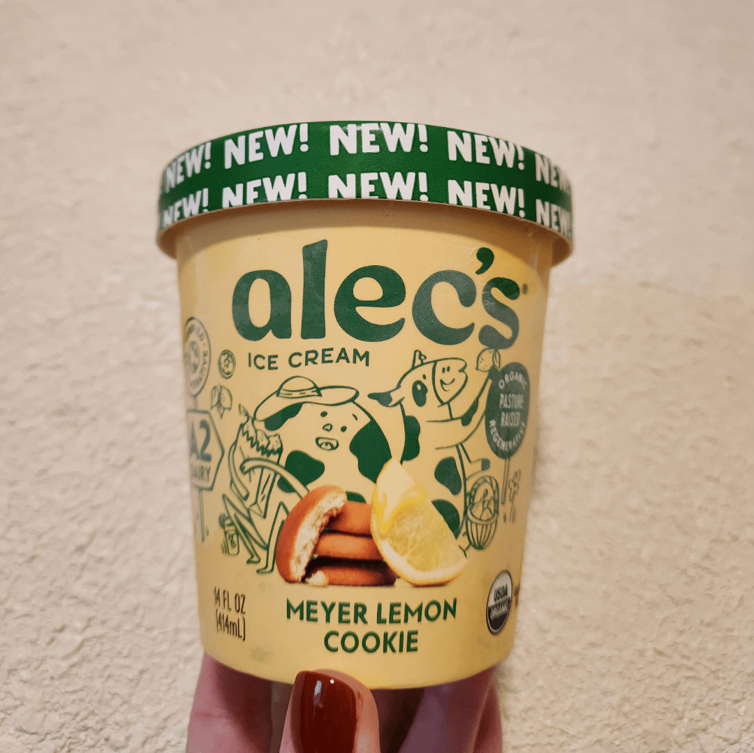 Alec's describes this flavor as "organic Meyer lemon ice cream, a fresh lemon curd swirl, and a perfectly crunchy gluten-free lemon cookie".
