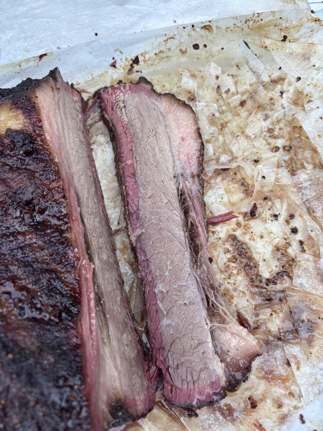 Looks juicer than my first, mine was a flat as well. Haven’t tried again since, it literally made me dry heave at the thought of brisket for a little while. My bark was terrible and the seasoning just scraped off. I’ll try again eventually but for now I’m good with ribs and chicken 😂