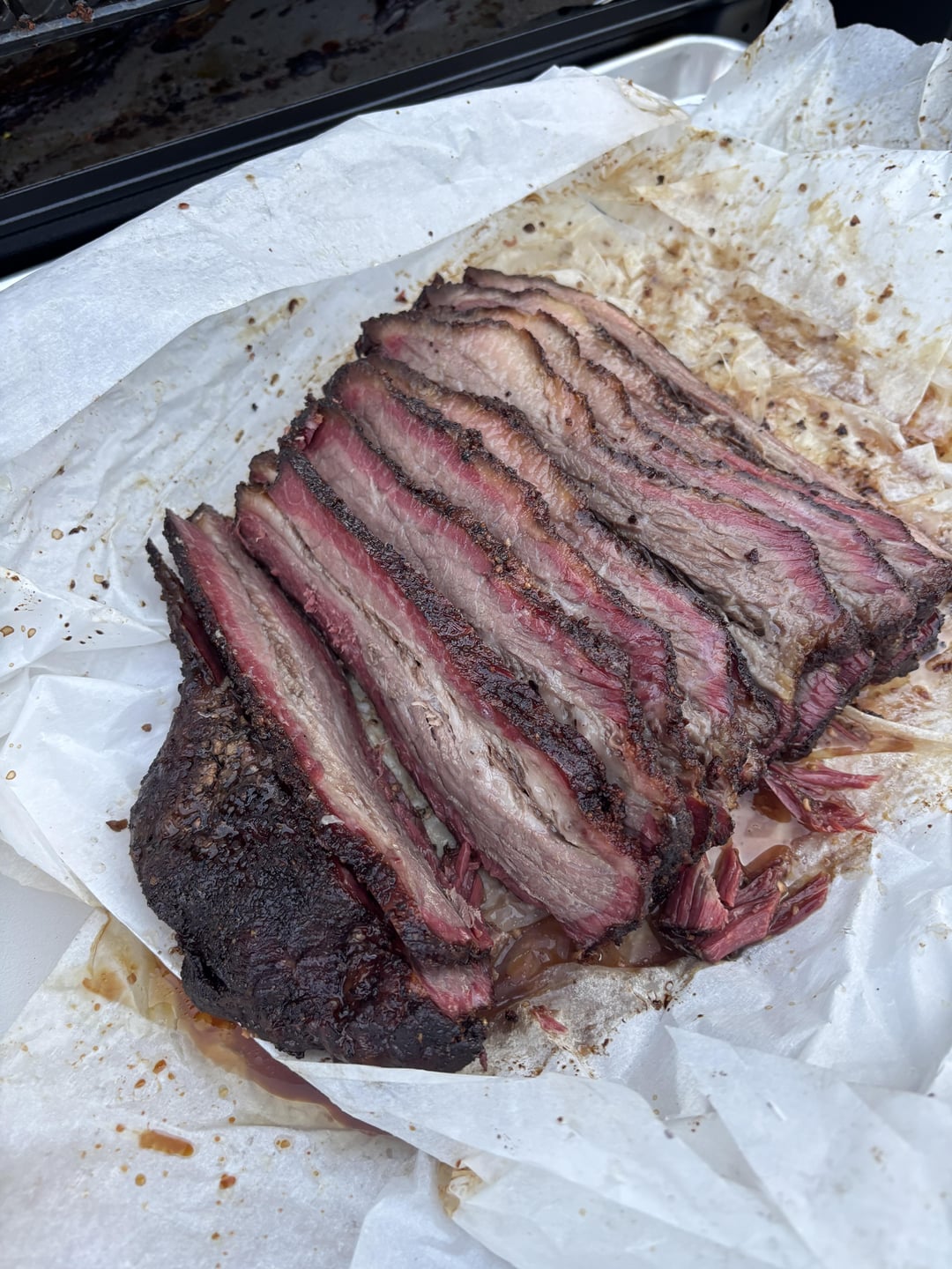 First time smoking anything and on my brand new redland. I wound up choosing to go big with a brisket flat from Costco. I threw it on my new traeger at about midnight for about 10 hours at 180 degrees – super smoke. In the morning, I turned up the smoker to 225 until I hit 170 internal temp drizzling a little apple cider vinegar along the way. I then wrapped it in butcher paper until I hit 205 internal. Rested for 2 hours in a cooler. Not bad….