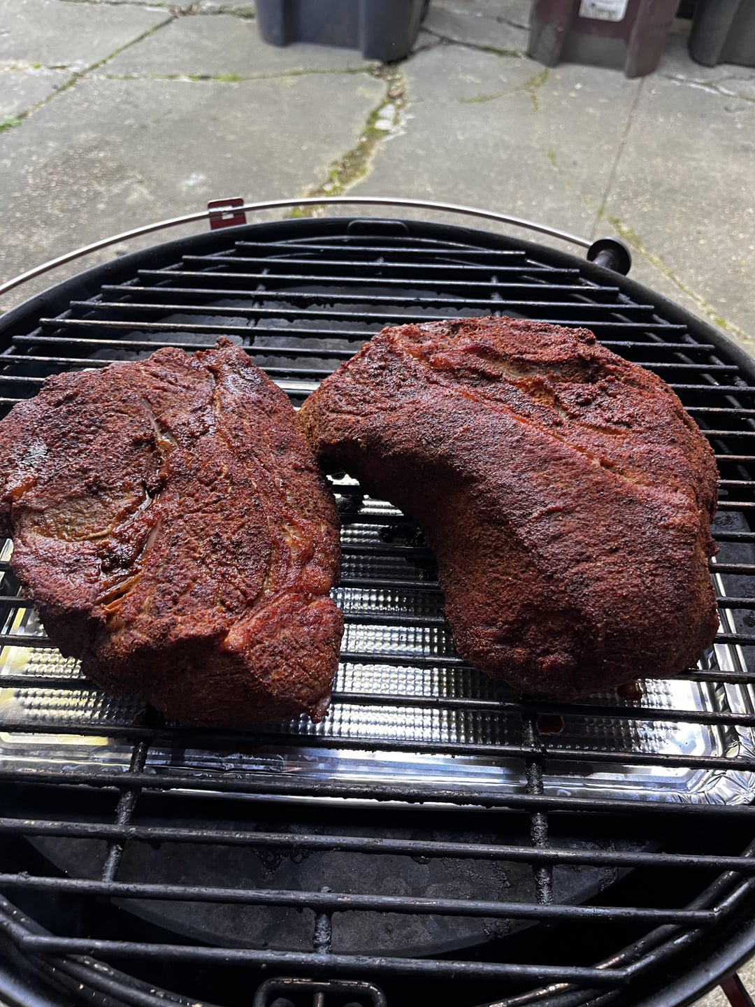 Felt I needed some pit beef for tomorrow. Now the big question cook to pull temp or cook to slice temp🤔