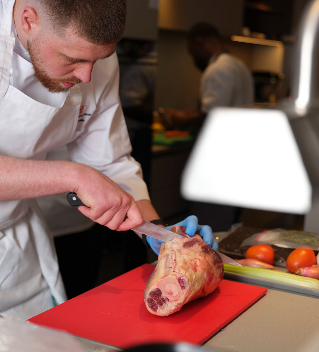 This year’s brief had appeared to have “flummoxed” some of the finalists – to use Michel’s words – because beef shin is not a cut often used, but he and Alain had decided on it precisely for this reason: “We talked about a dish that’s going to challenge them, rather than just giving them a fillet of beef, which is dead simple. That wouldn’t test them. This will.”